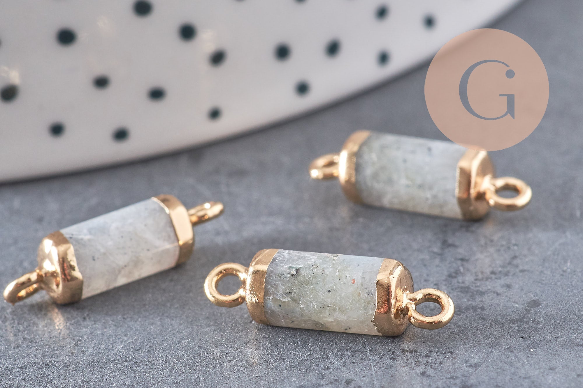 Colgante de conector de tubo de labradorita de oro, colgante de piedra de labradorita natural, 20 mm, x1 (G2795)