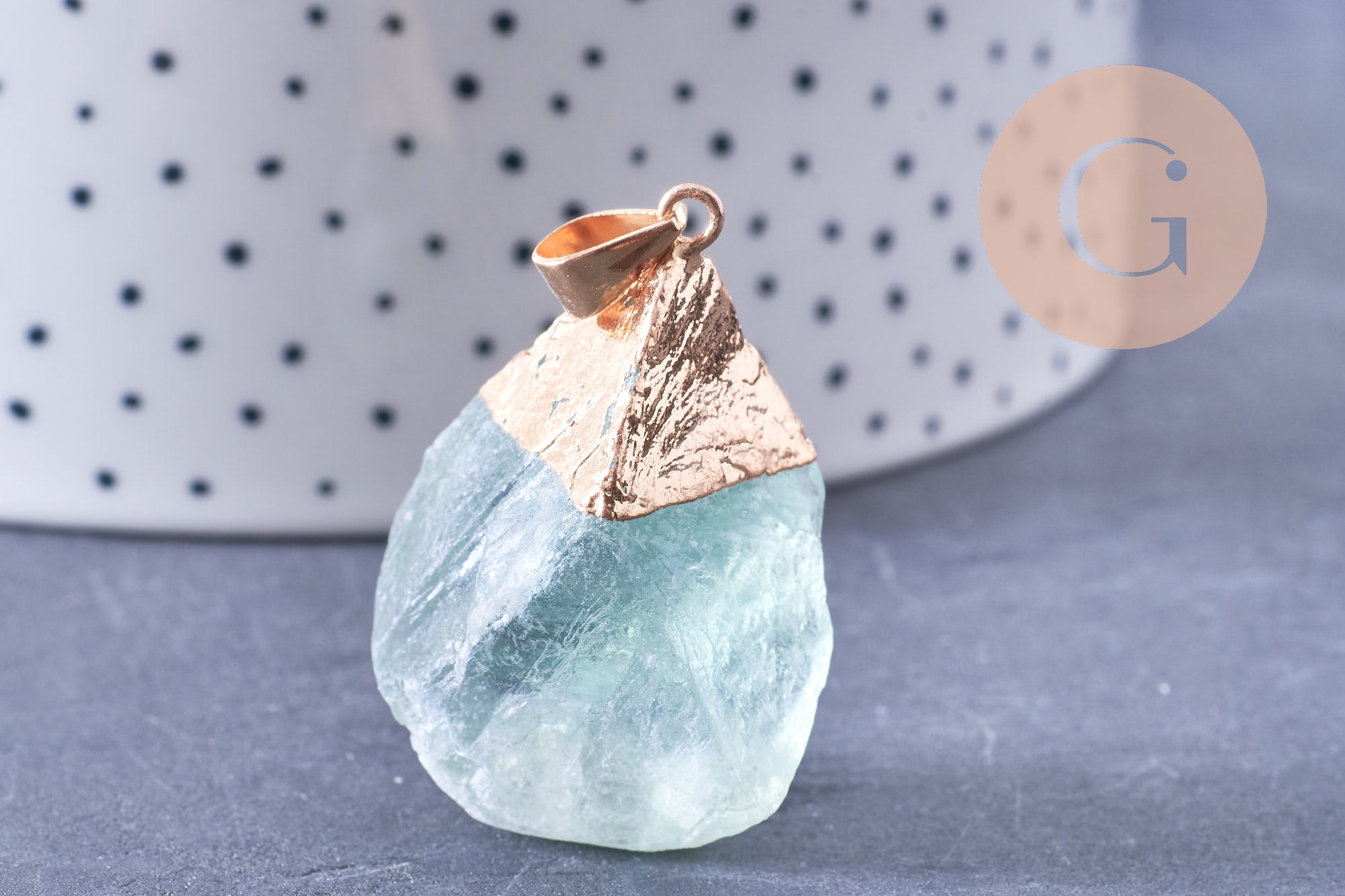 Este colgante de fluorita natural cruda combina la belleza cruda de las piedras naturales y la elegancia de un soporte de hierro dorado . Sus tonalidades verdes y moradas lo convierten en una base perfecta para crear originales y místicos collares DIY . Cada pieza, cortada libremente, es única y aportará un toque de carácter a tus joyas hechas a mano.