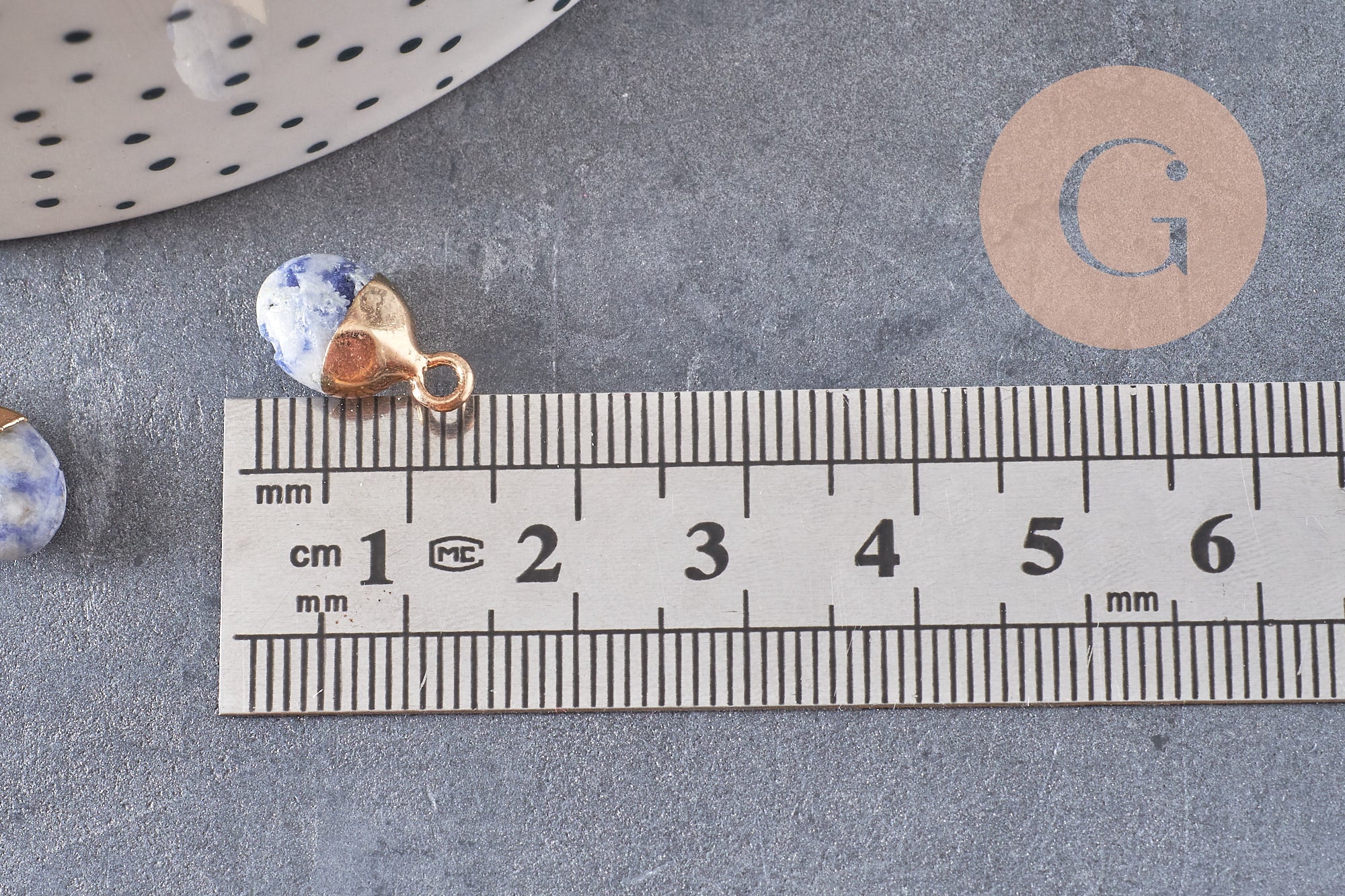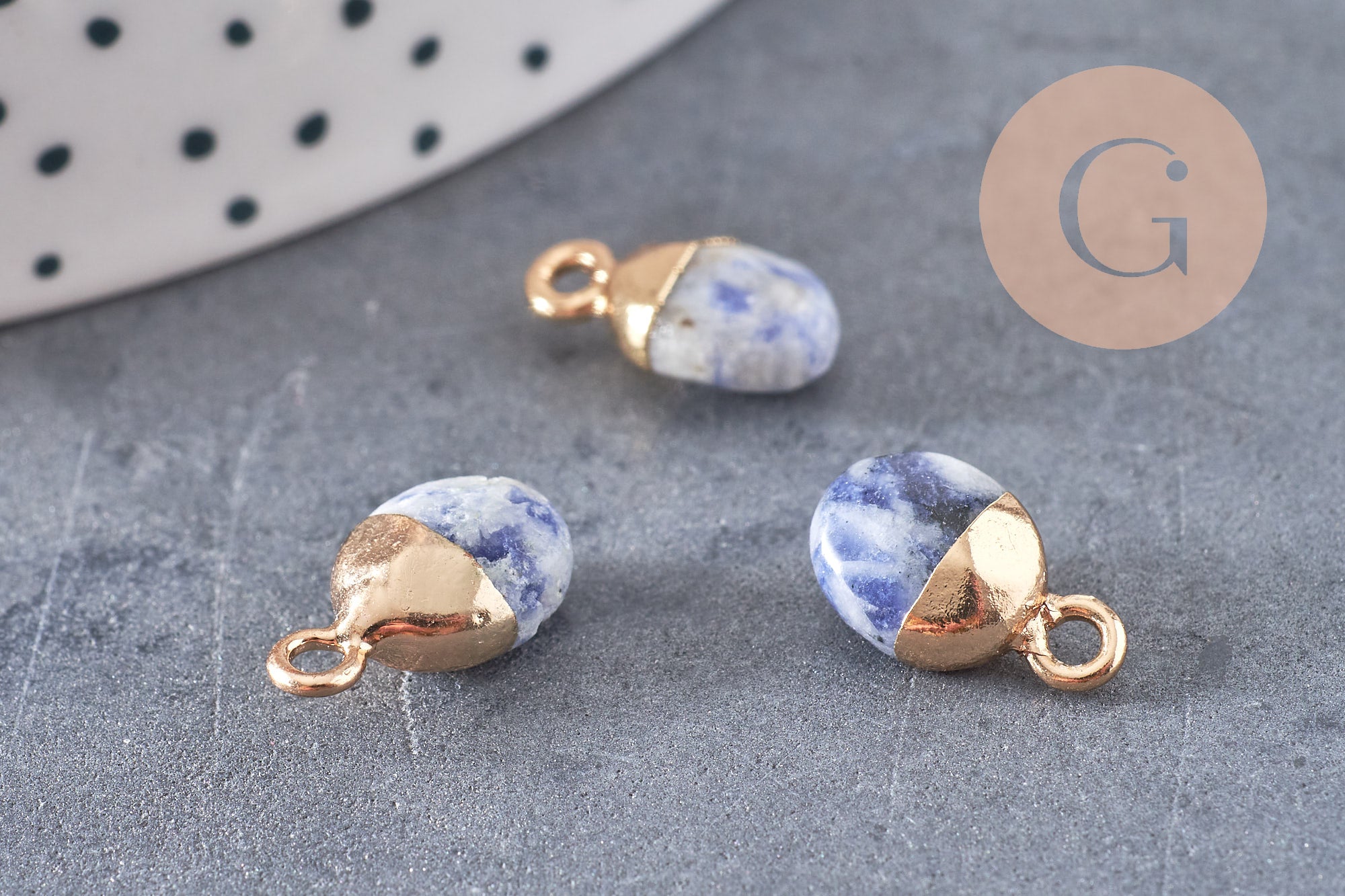 Enamórese de este discreto colgante de sodalita natural en forma de gota, montado sobre una base de hierro bañada en oro. Perfecto para crear elegantes collares, pendientes o pulseras refinadas.