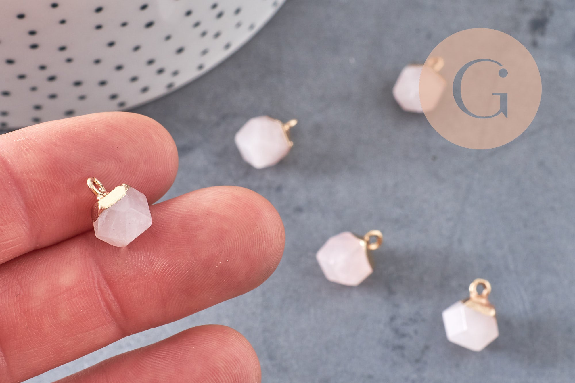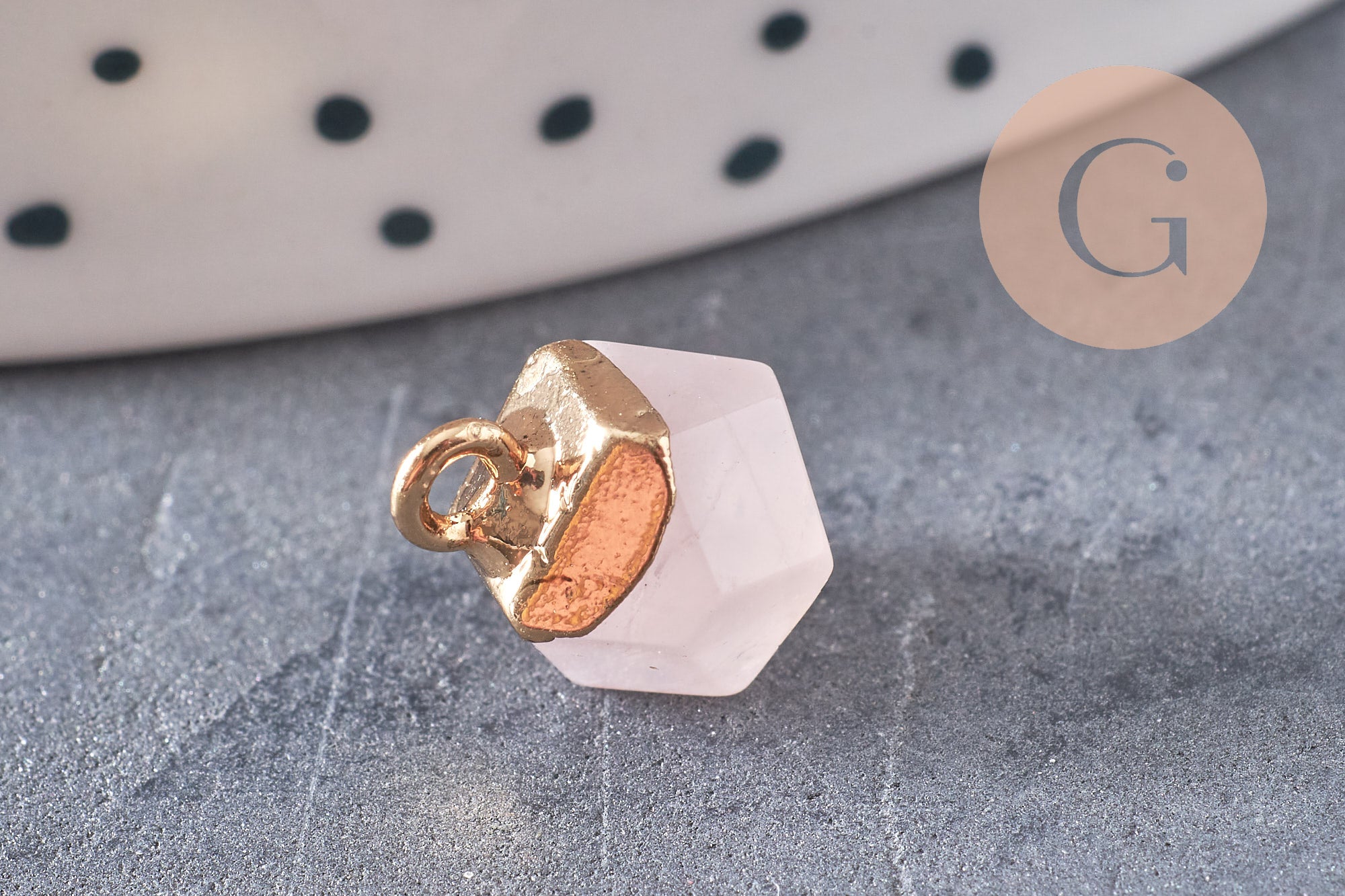 Colgante hexagonal de cuarzo rosa, suministros para manualidades, colgante de joyería, colgante de piedra, cuarzo rosa natural, colgante de cuarzo rosa, 11 mm, 2