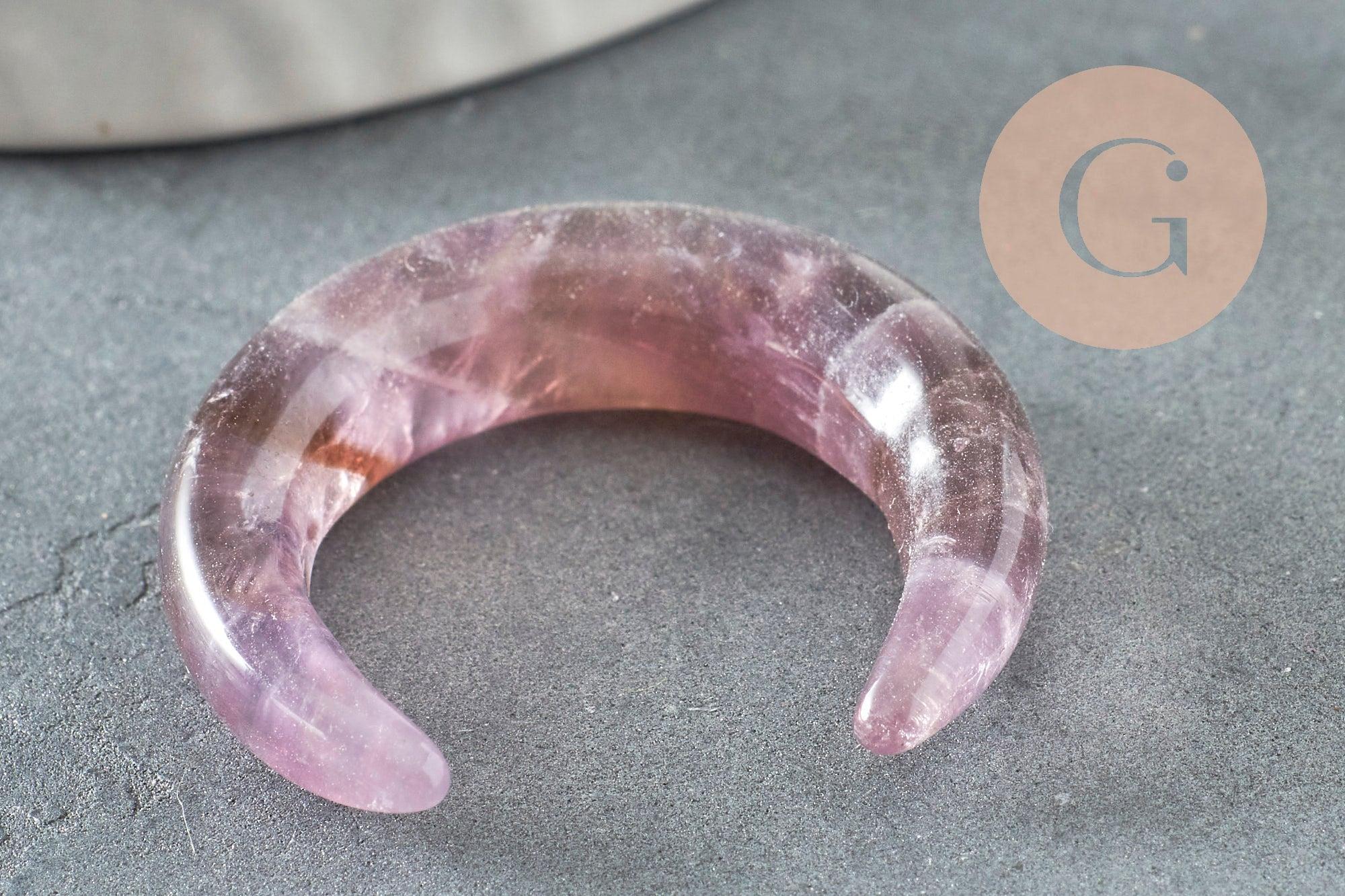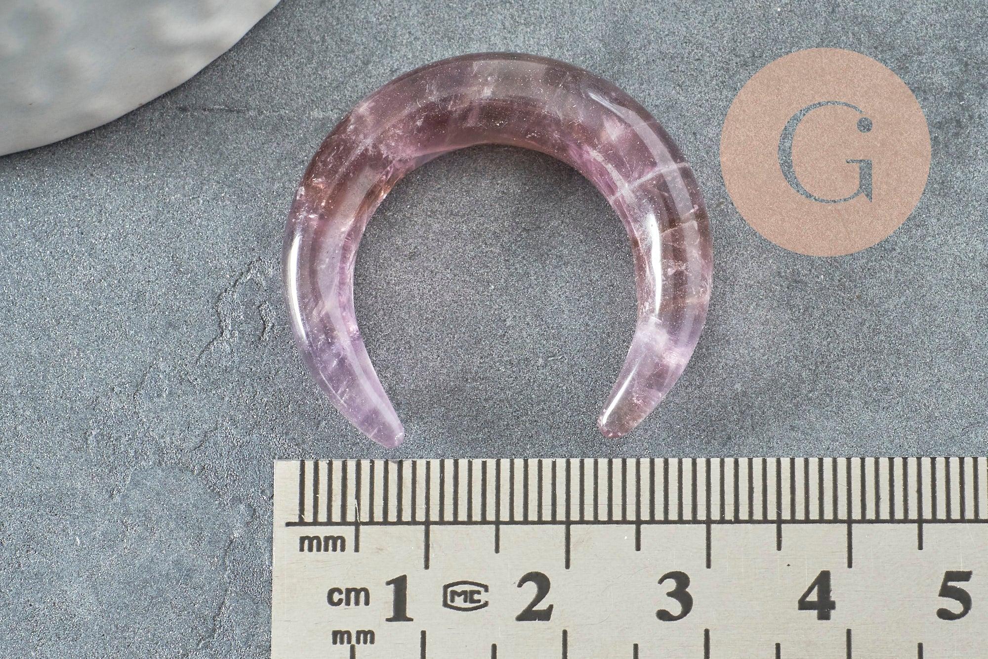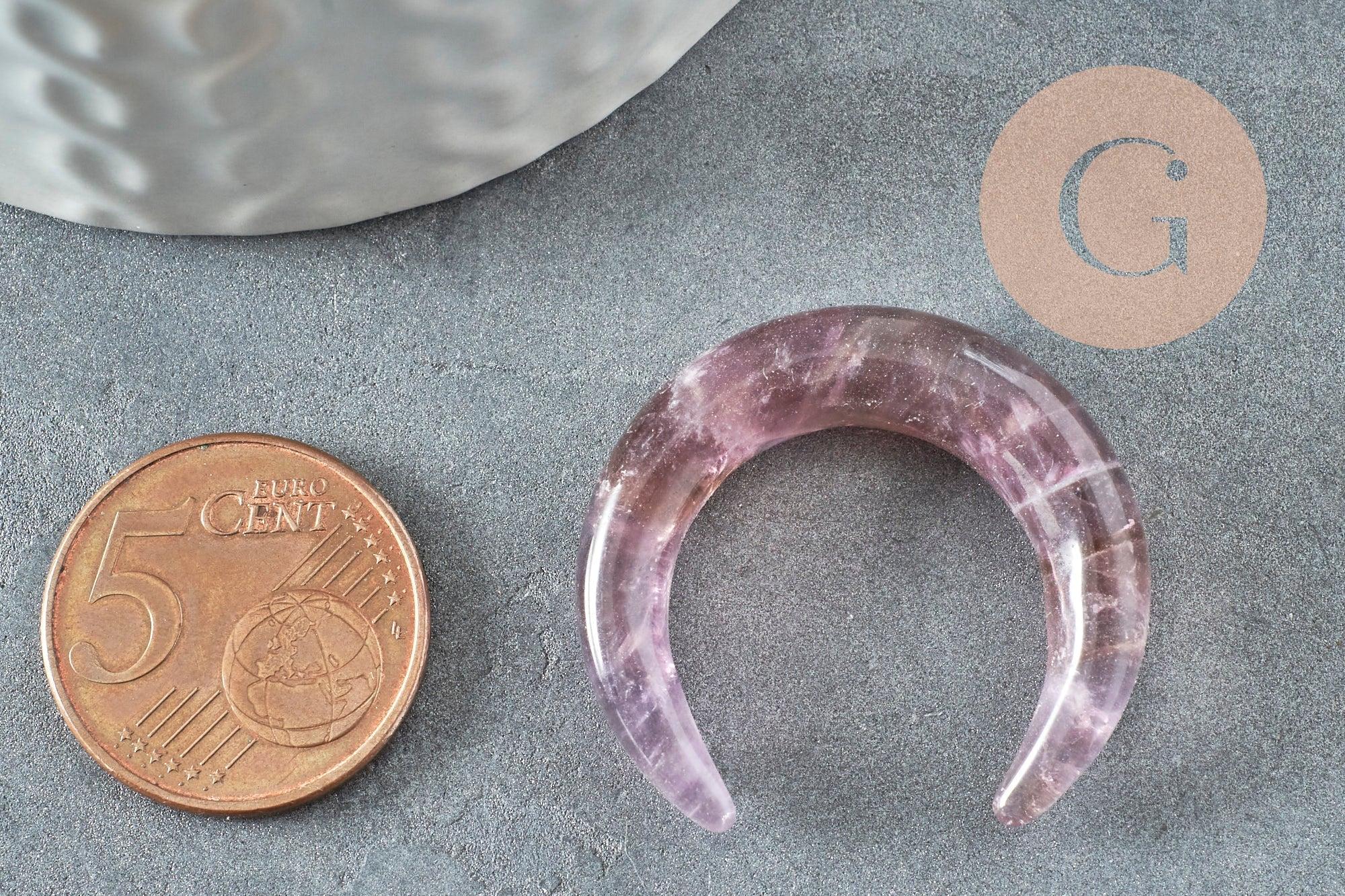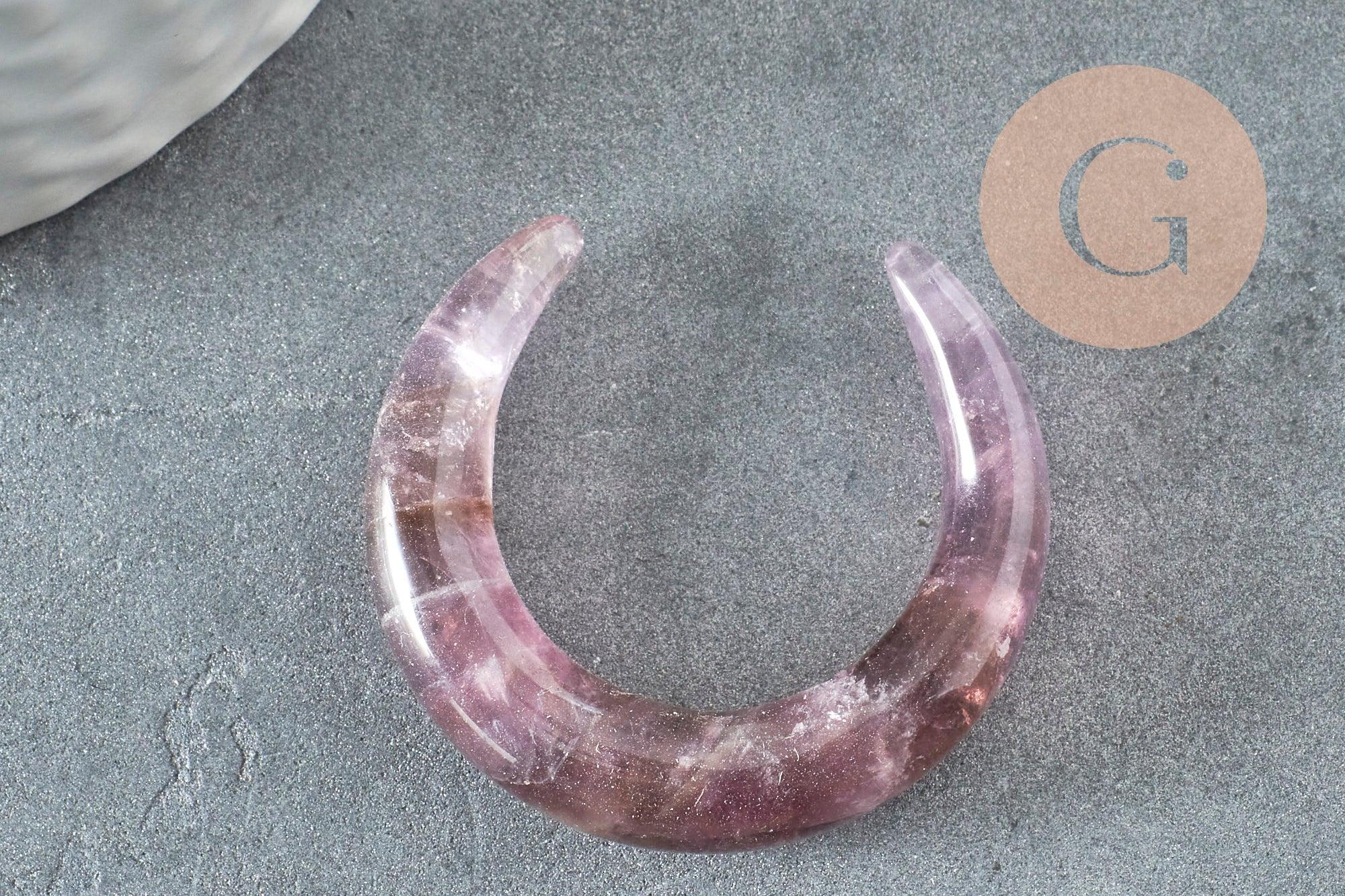 Realza tus creaciones con este magnífico colgante en forma de luna, tallado a partir de una amatista natural con profundos matices de color púrpura.