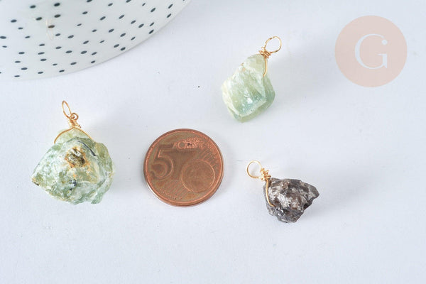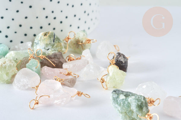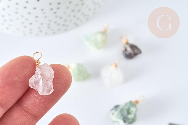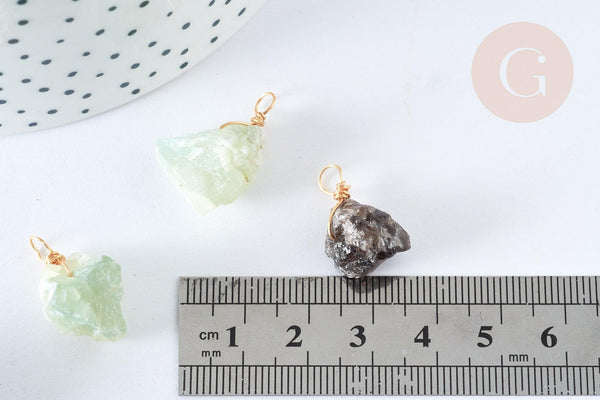 Adopte este colgante de piedra natural , piedra fina. Esta es una piedra en bruto. Además, va montado sobre una coleta de cobre dorado . ¡Esto te permitirá colgarlo donde quieras!