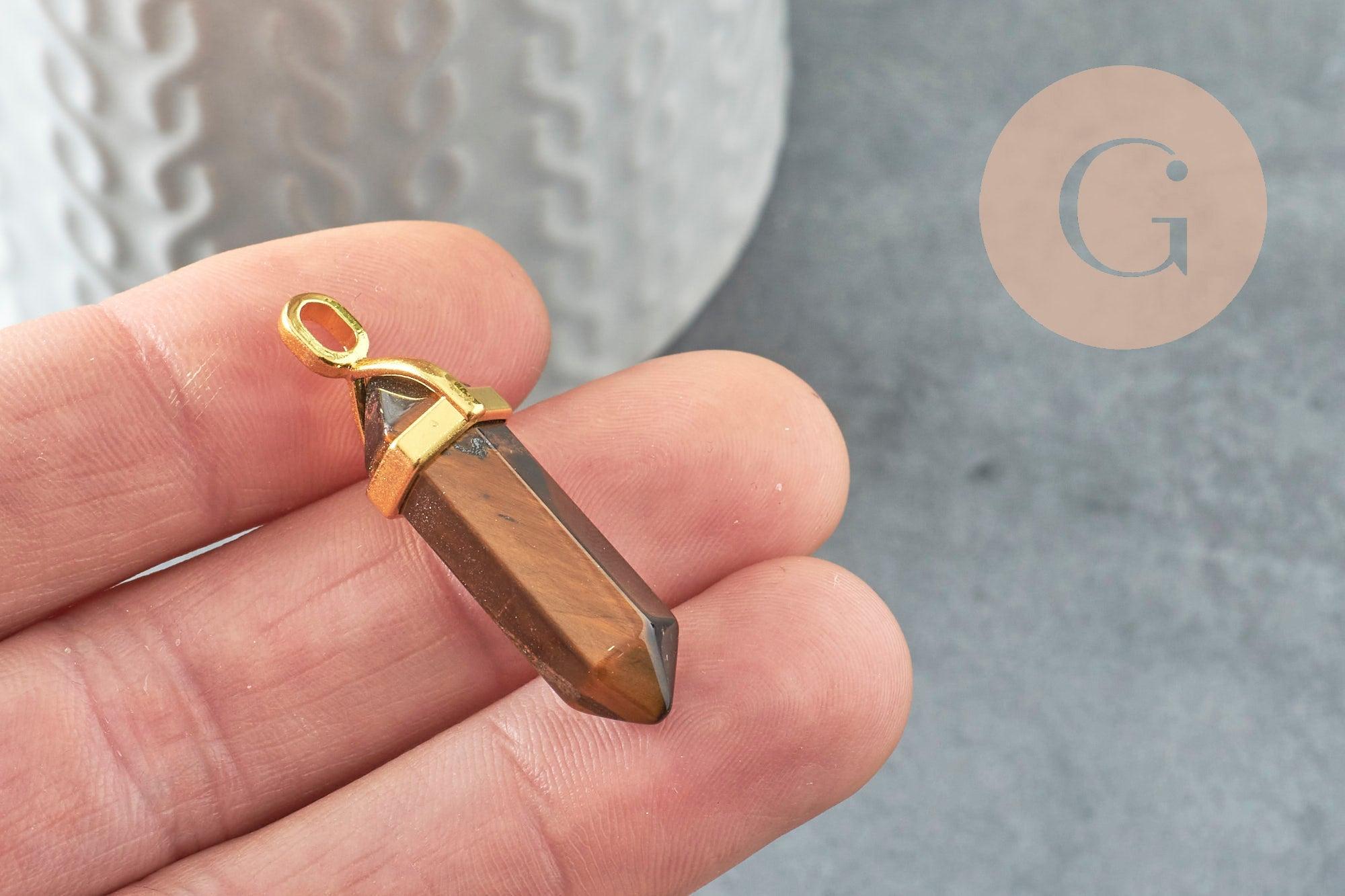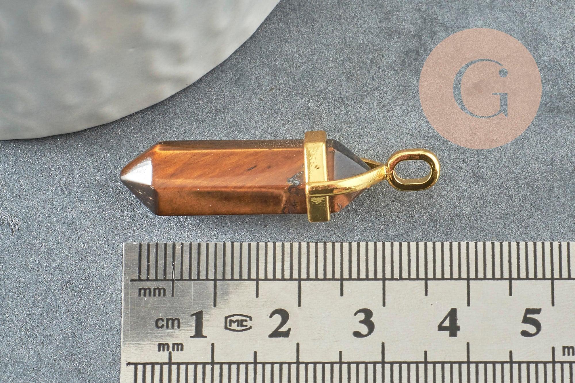 Déjate seducir por este colgante de ojo de tigre natural con su soporte dorado.