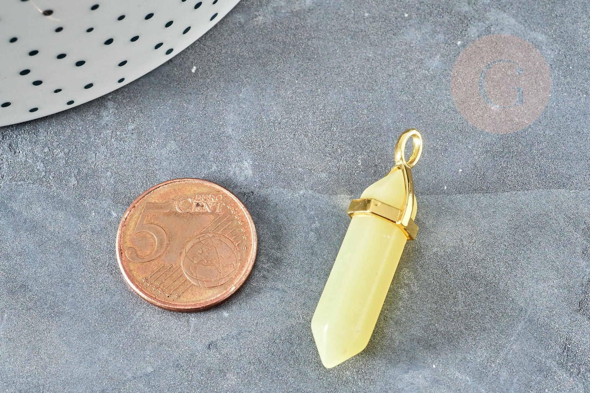 Colgante en punta de peridoto de latón dorado 40 mm, creación de joyas, colgante de piedra natural, x1 G8397