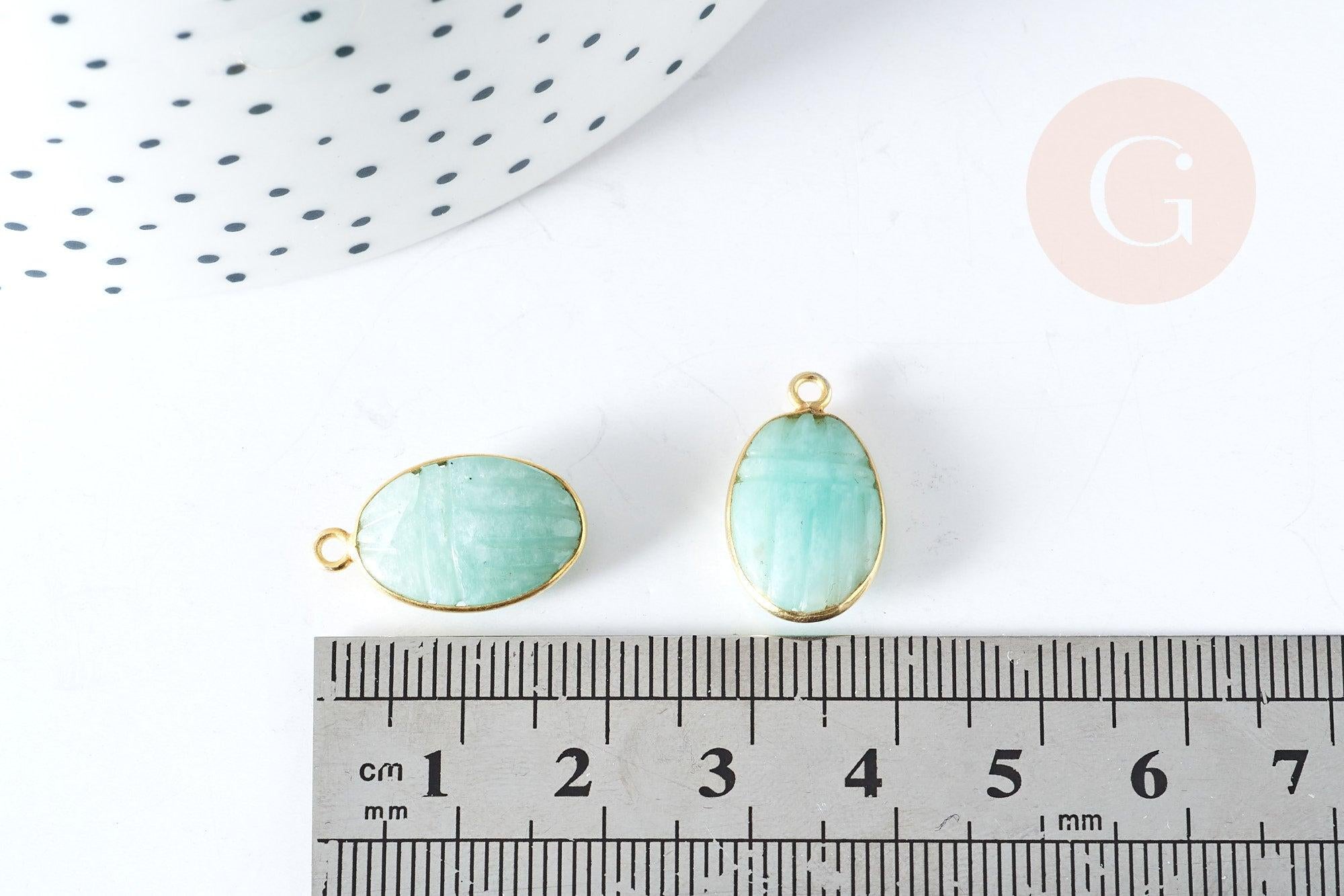 Adopte este colgante de escarabajo en amazonita natural con su soporte en plata maciza 925 dorada de 18 quilates.