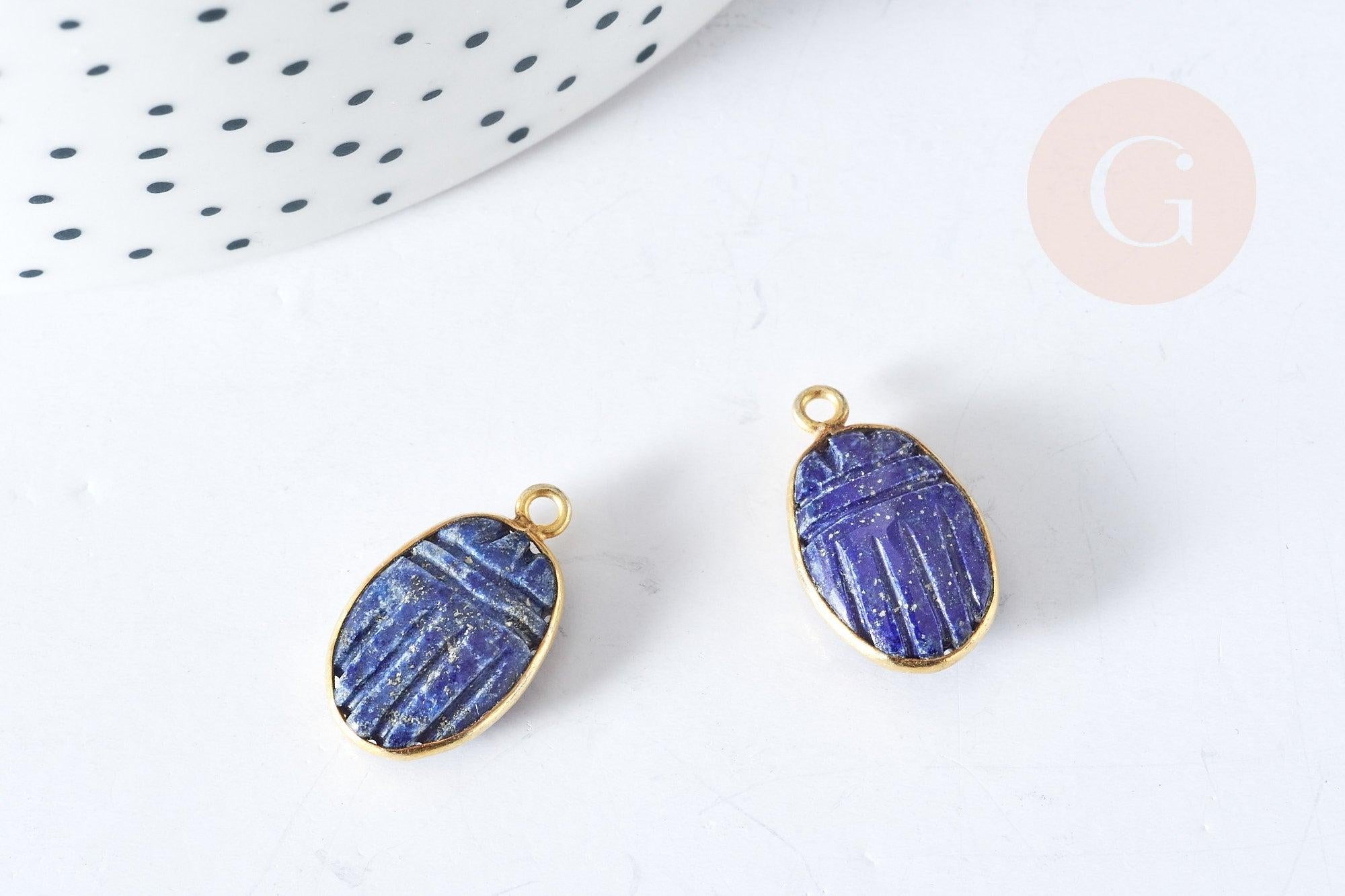 Adopte este colgante de escarabajo en lapislázulis natural con su soporte en plata maciza 925 dorada de 18 quilates.