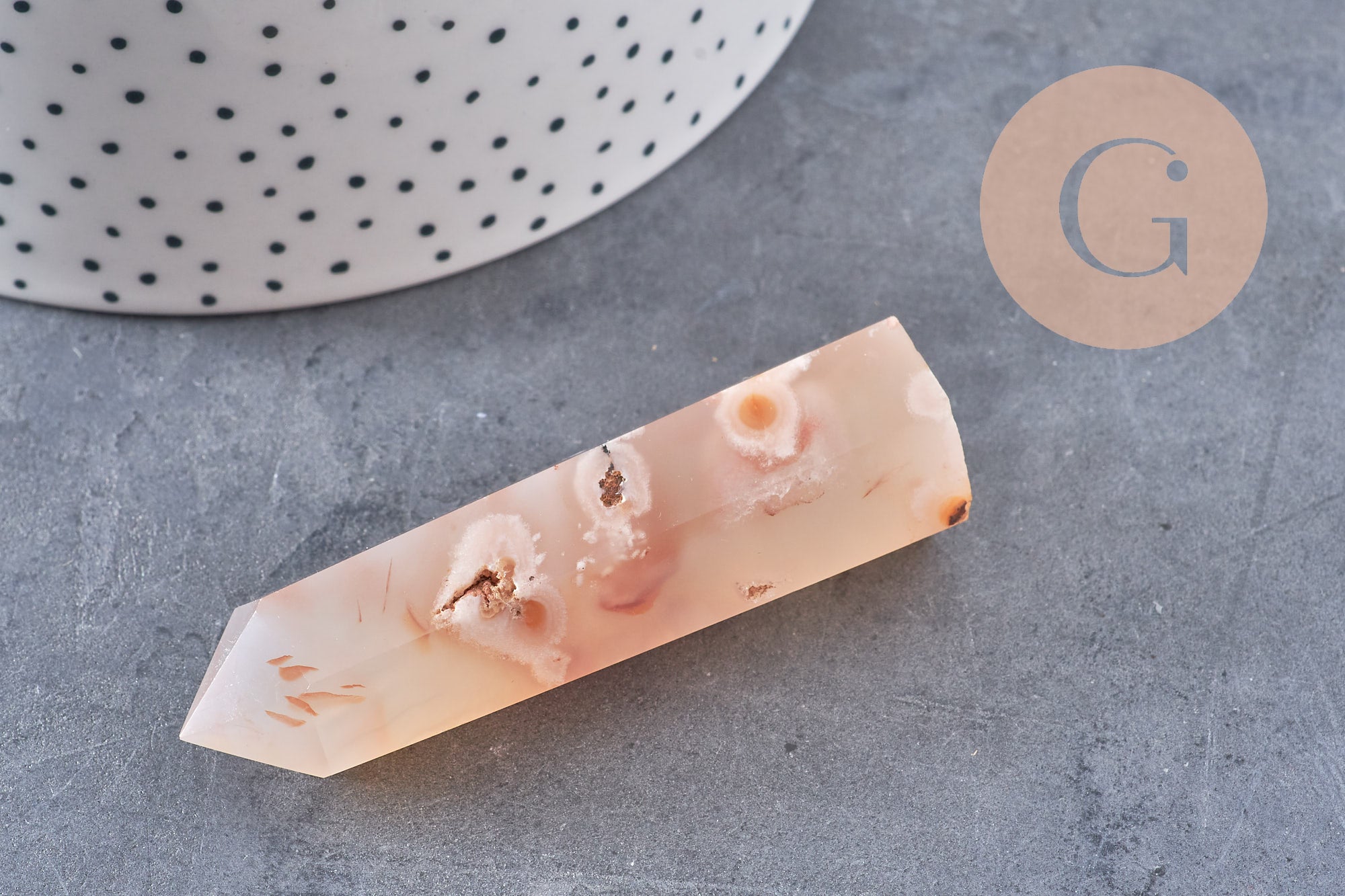 Punta de ágata flor natural pulida, ágata flor natural, piedra semipreciosa, sesión de litoterapia, x1 (G4863)