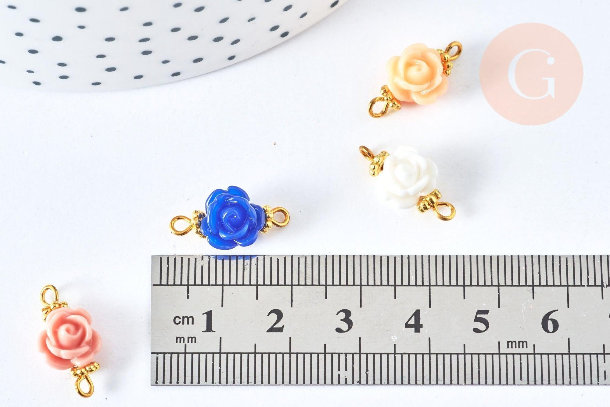 Conector de flor de resina multicolor en latón dorado, 9 mm, creación de bisutería, flor de resina epoxi, X10 (G6941)