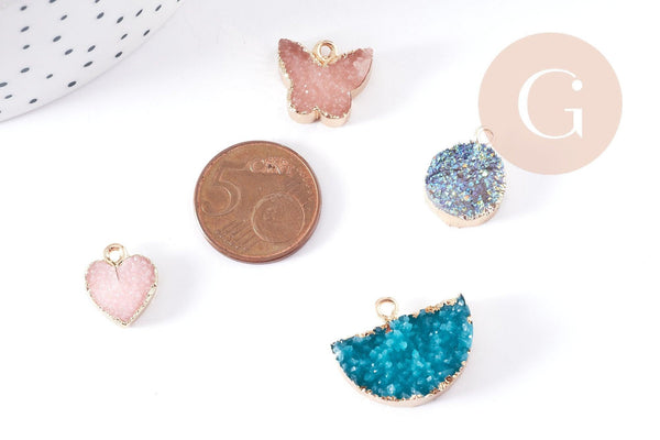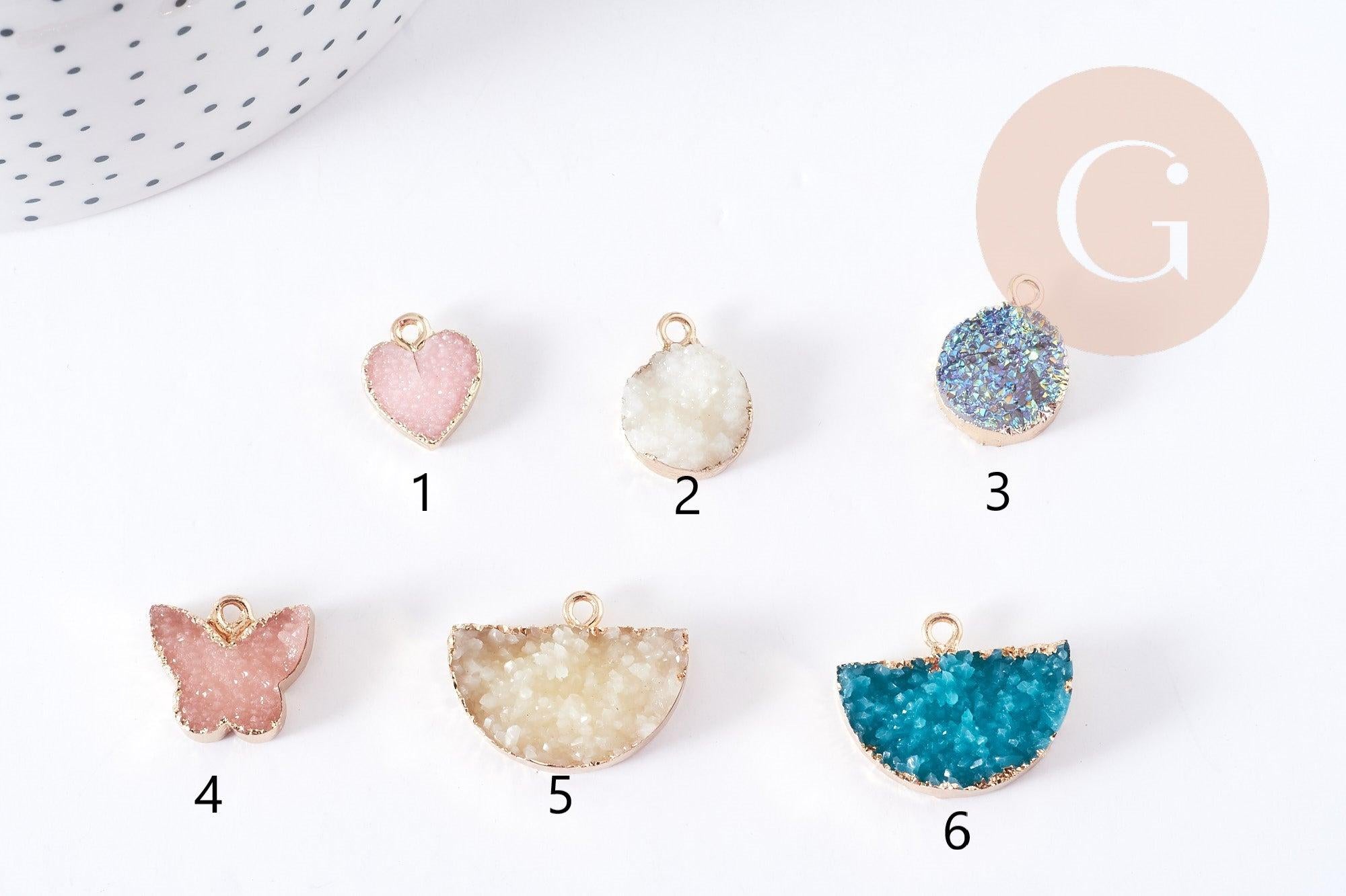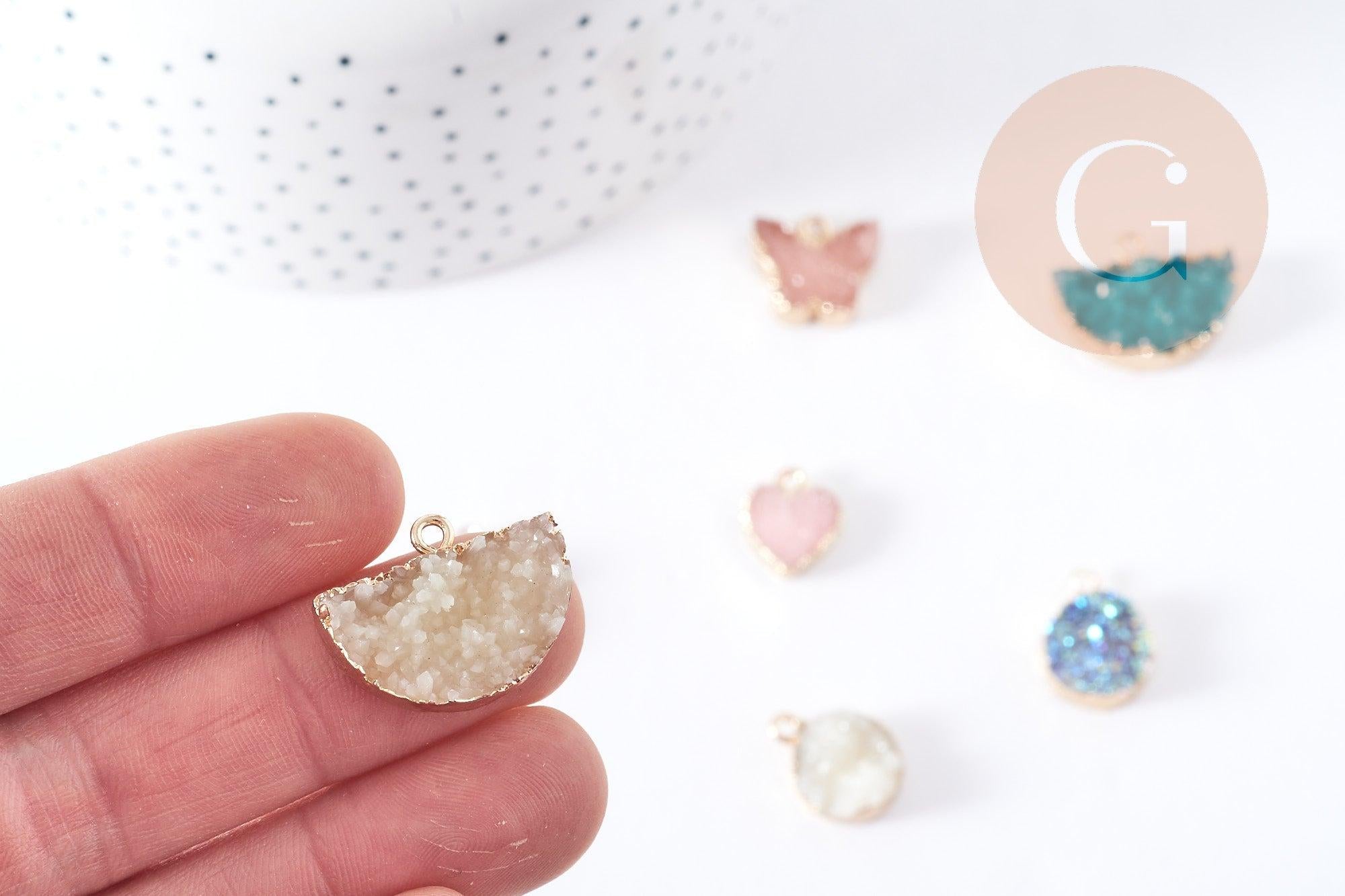 Colgante de resina con imitación de piedra, piedra lunar drusa, 14-26 mm, colgante para la elaboración de joyas con piedras, 1 unidad (G5911)