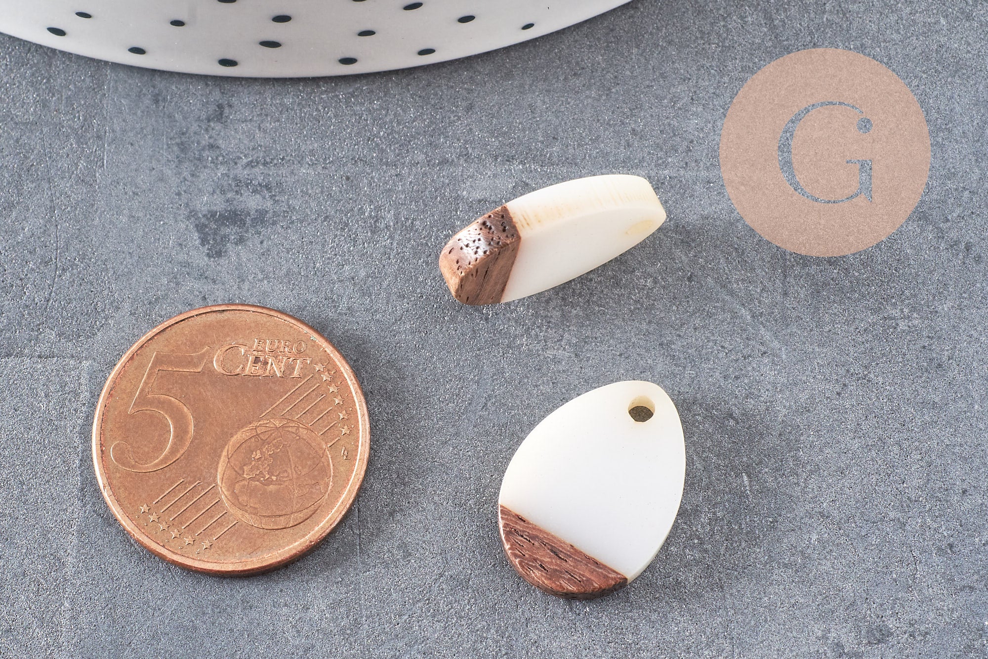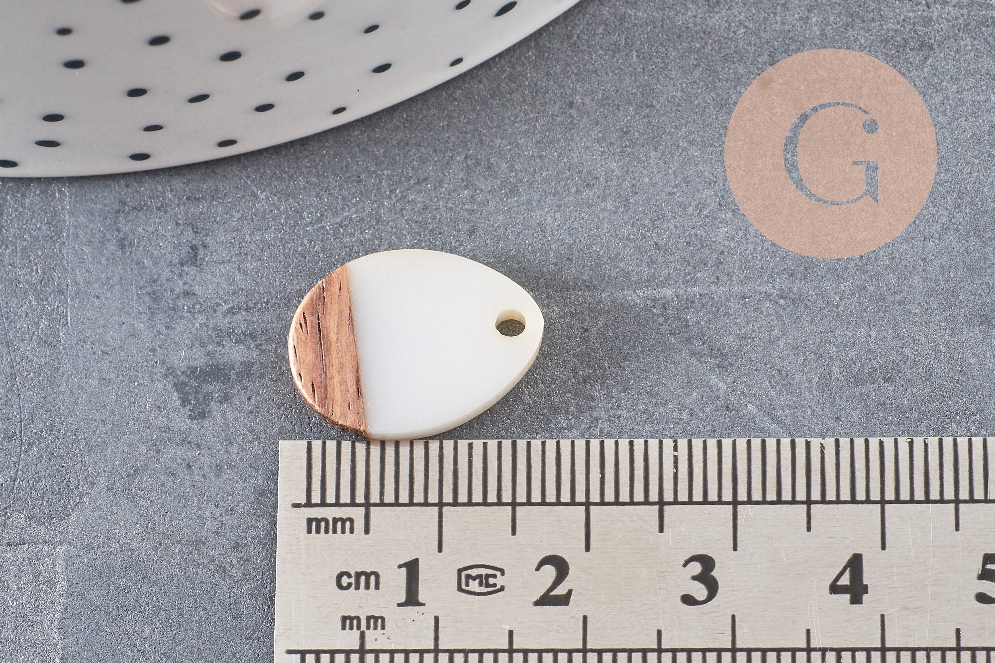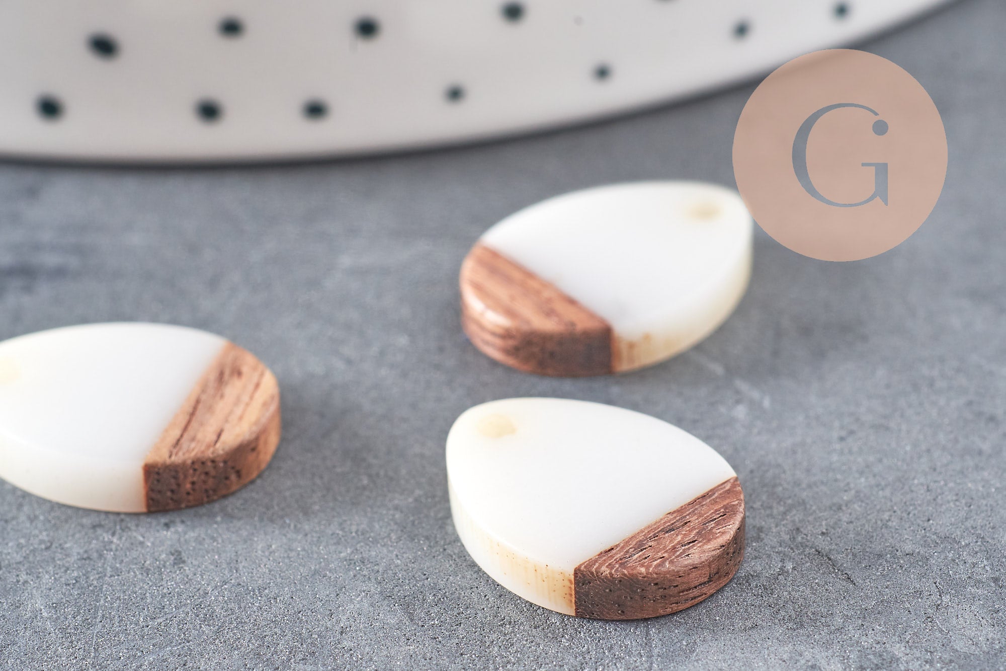 Estos colgantes en forma de gota combinan la calidez de la madera natural con la pureza de la resina blanca . Una opción elegante para tus creaciones de joyería con un estilo limpio y moderno.