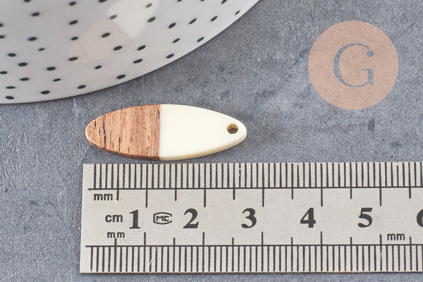 pendentifs ovale bois résine blanche 28mm, création bijoux bois, x5 G1525