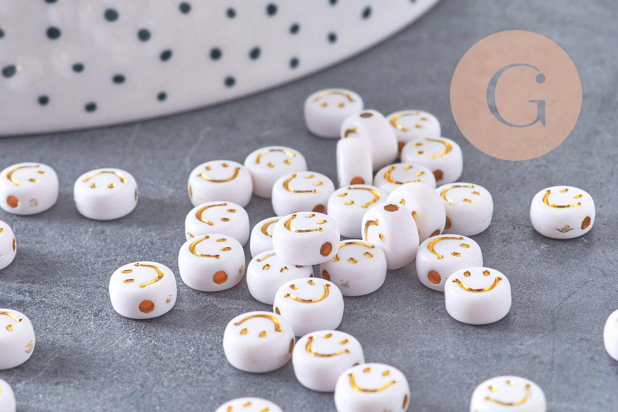 perla de plástico blanca sonriente dorada redonda, perla de plástico, perla de letra redonda, creación de joyas, perla de corazón, lote de 10 gramos