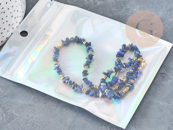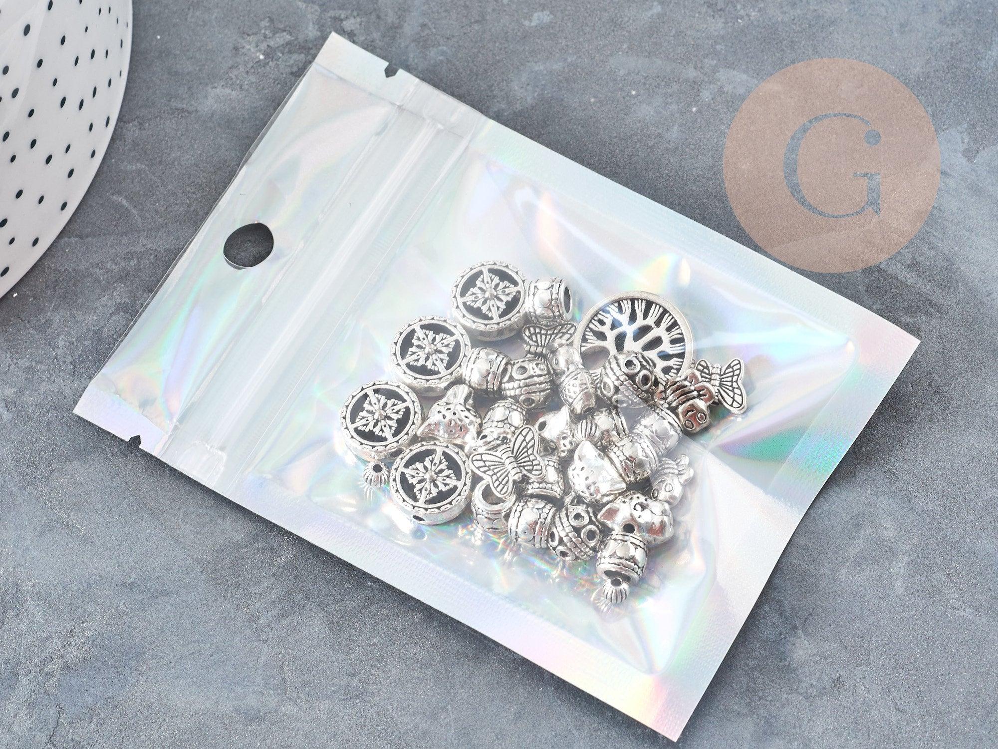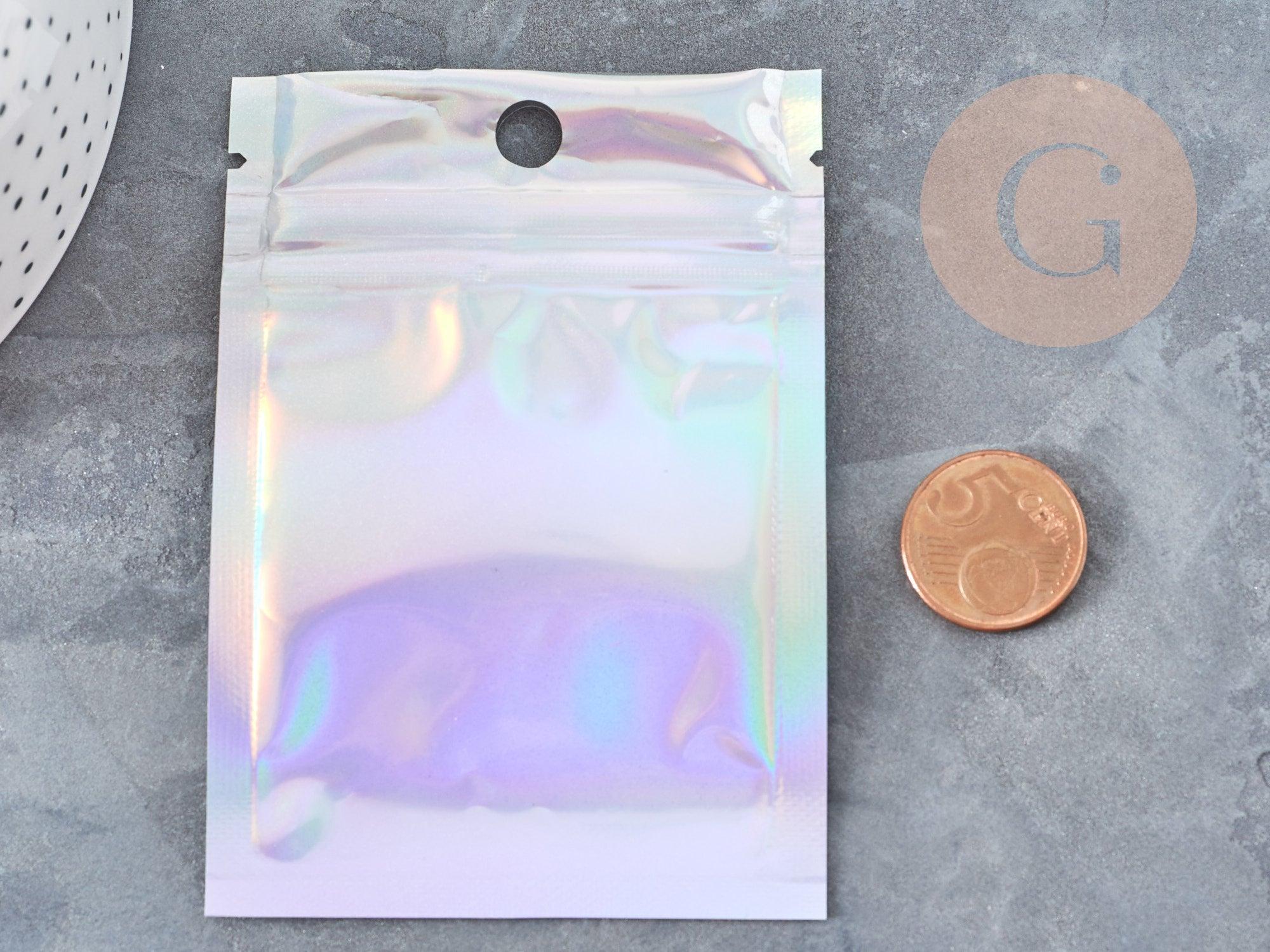 Sacs zippé plastique rectangle gris holographique 10x7cm, x5 (G9037)