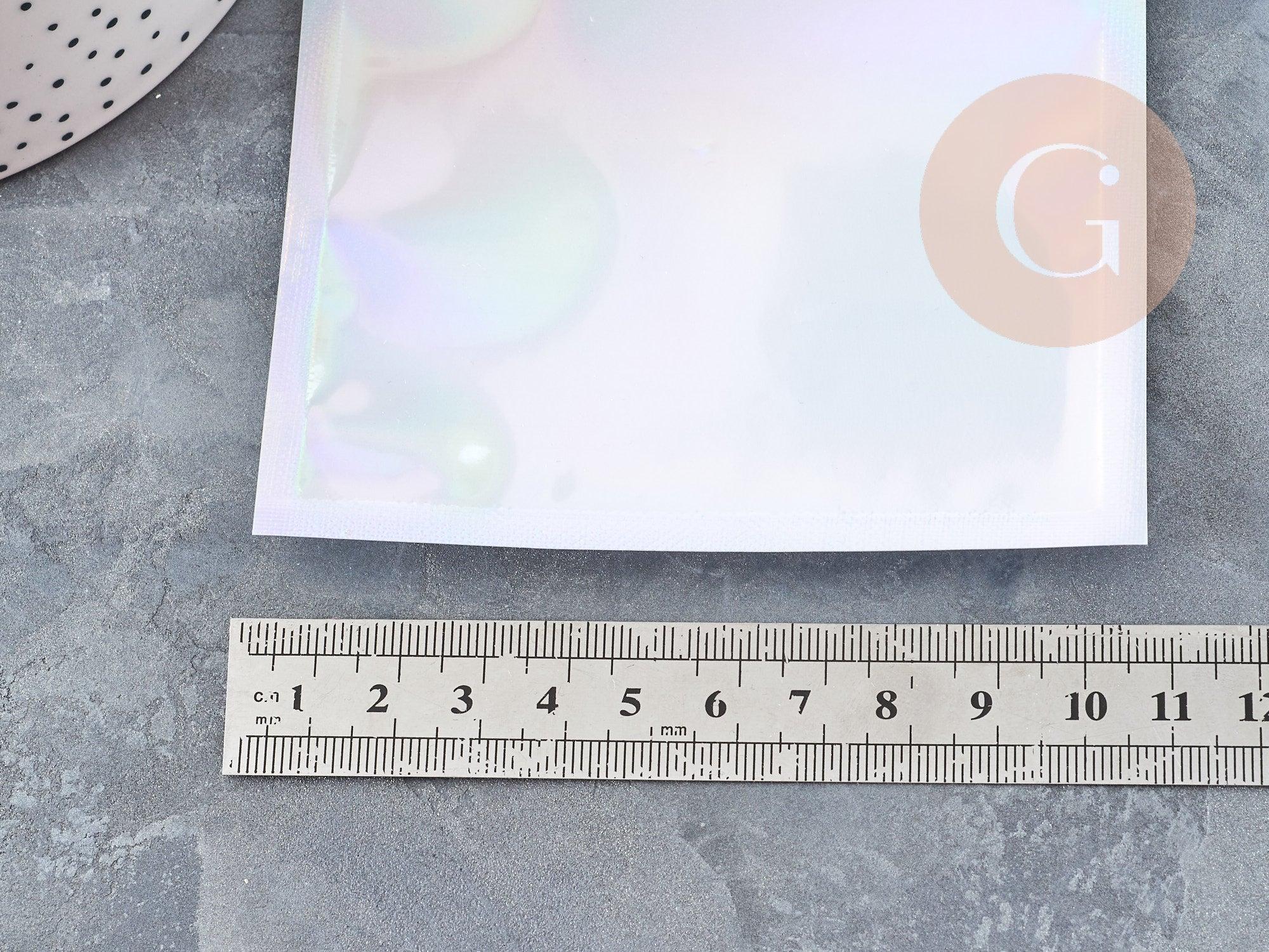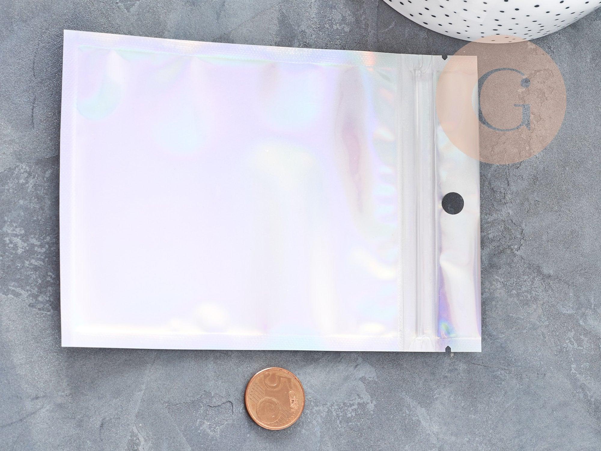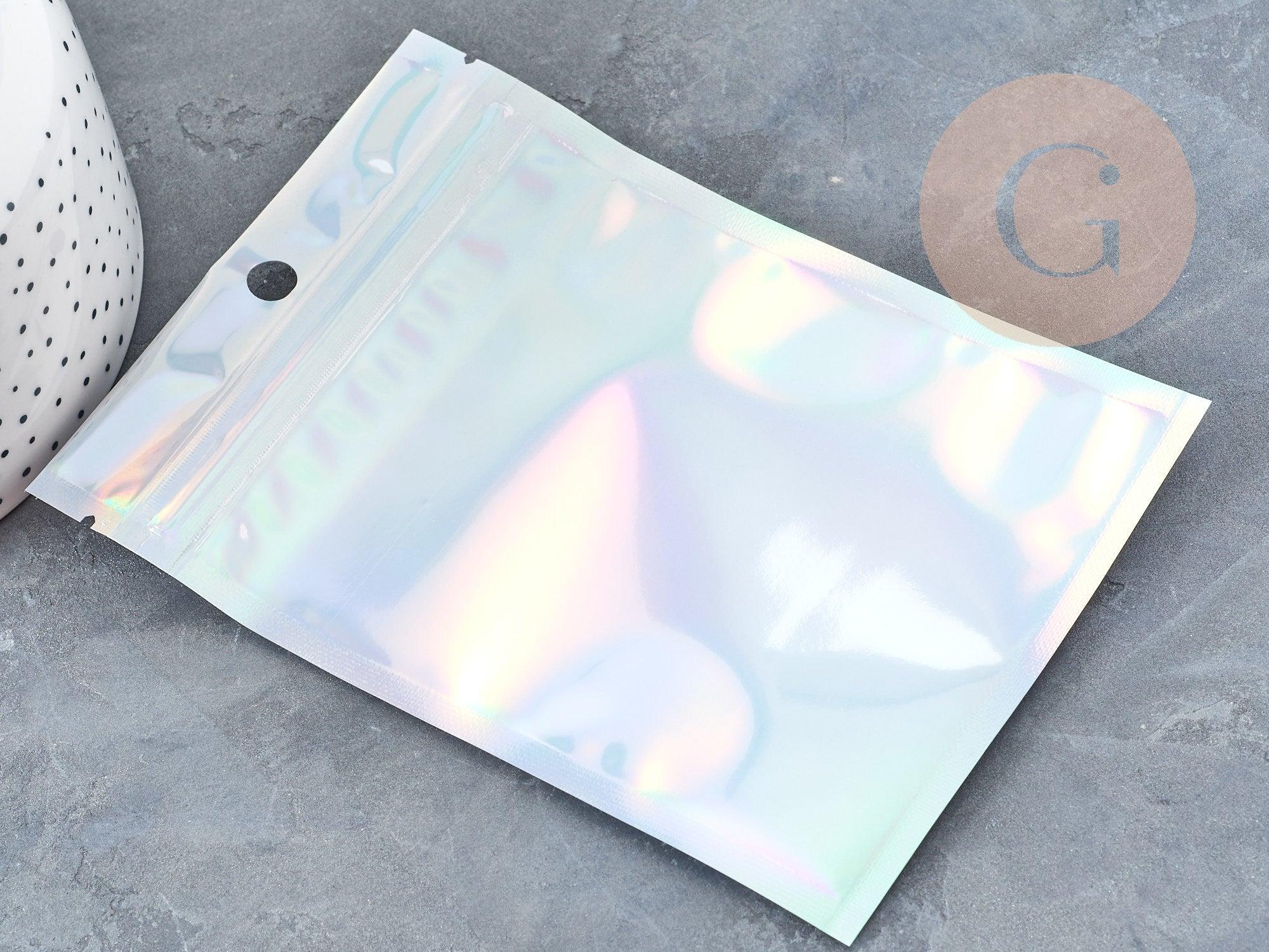 Dale un toque de brillo y elegancia a tu organización con este juego de 5 bolsas rectangulares de plástico holográfico gris de 10 x 7 cm con cierre . Funcionales y estéticas, estas bolsas son ideales para guardar, empaquetar o presentar pequeños objetos de valor con un estilo moderno y profesional.