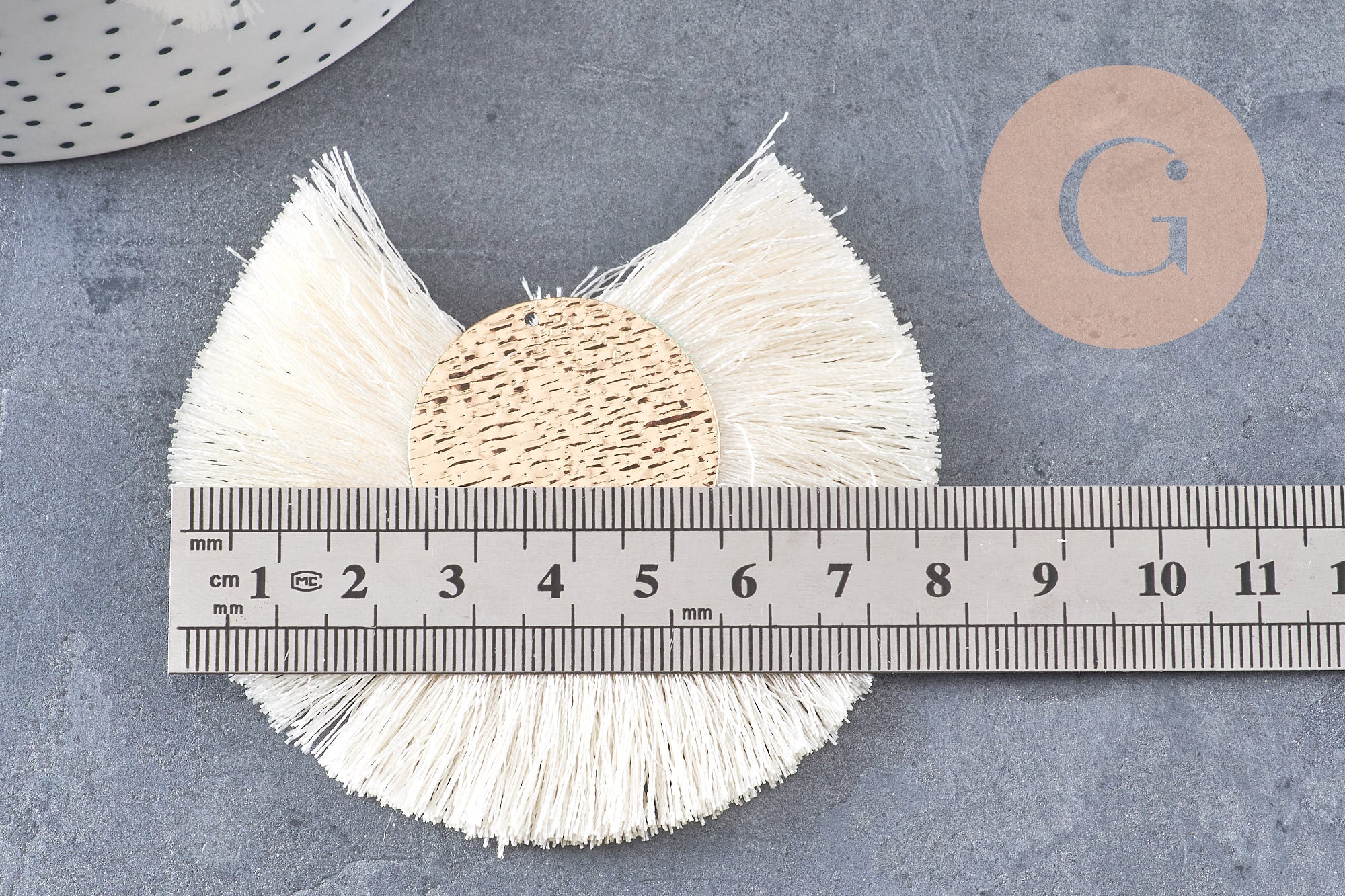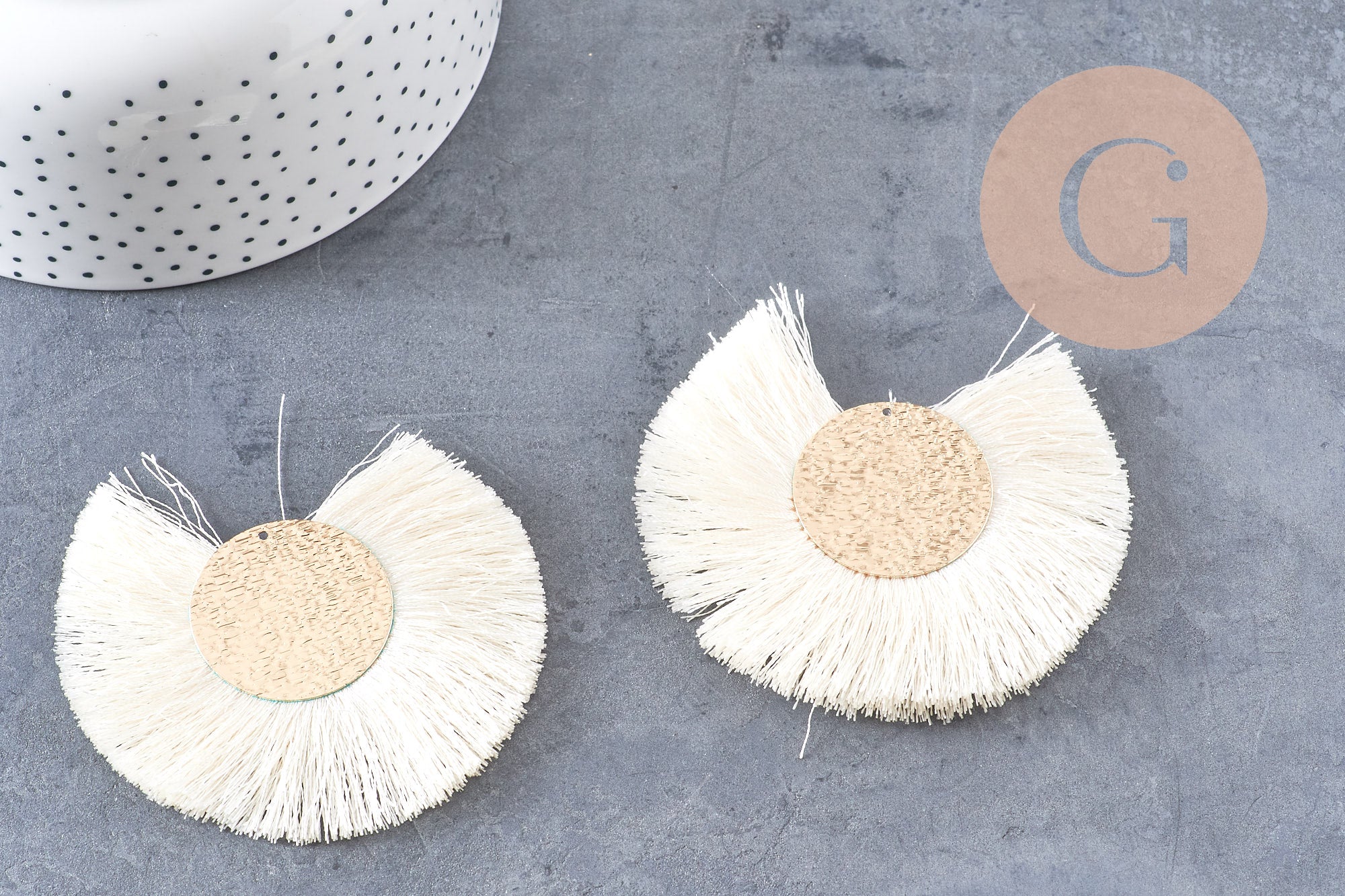 Colgante grande con borla en alambre blanco, crudo y dorado con engaste chapado en oro, diseño de pendiente, colgante de alambre dorado, 70-80 mm, x 2 (G4531)