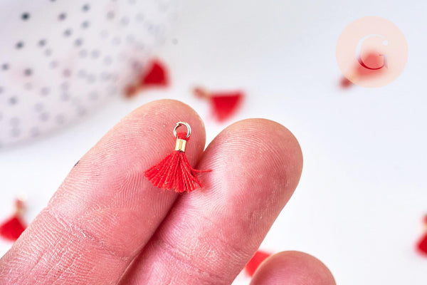 Pompón de poliéster rojo con soporte dorado, decoración de pompones, pendientes de pompones, confección de joyería bohemia, 10-15 mm, 10 G5560