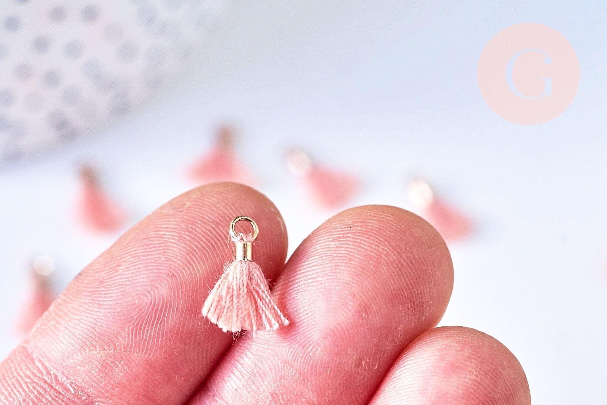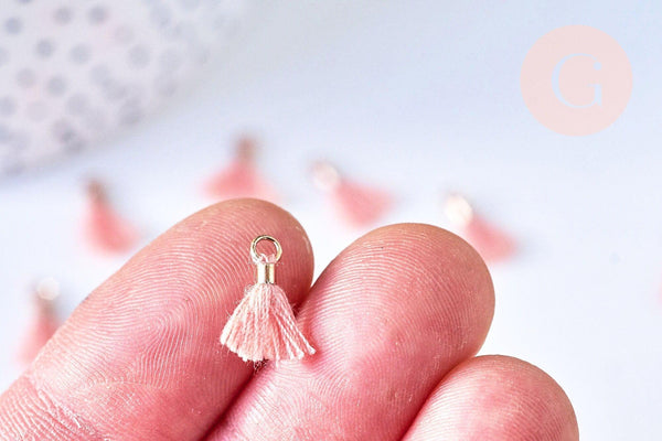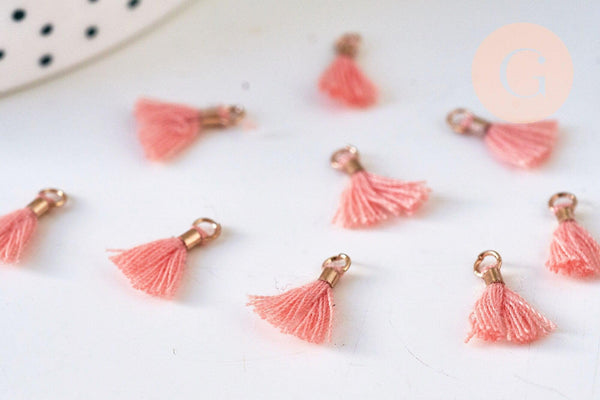 Pompón de poliéster color salmón antiguo, hierro dorado, 10-15 mm, x10 (G5559)