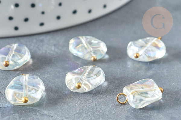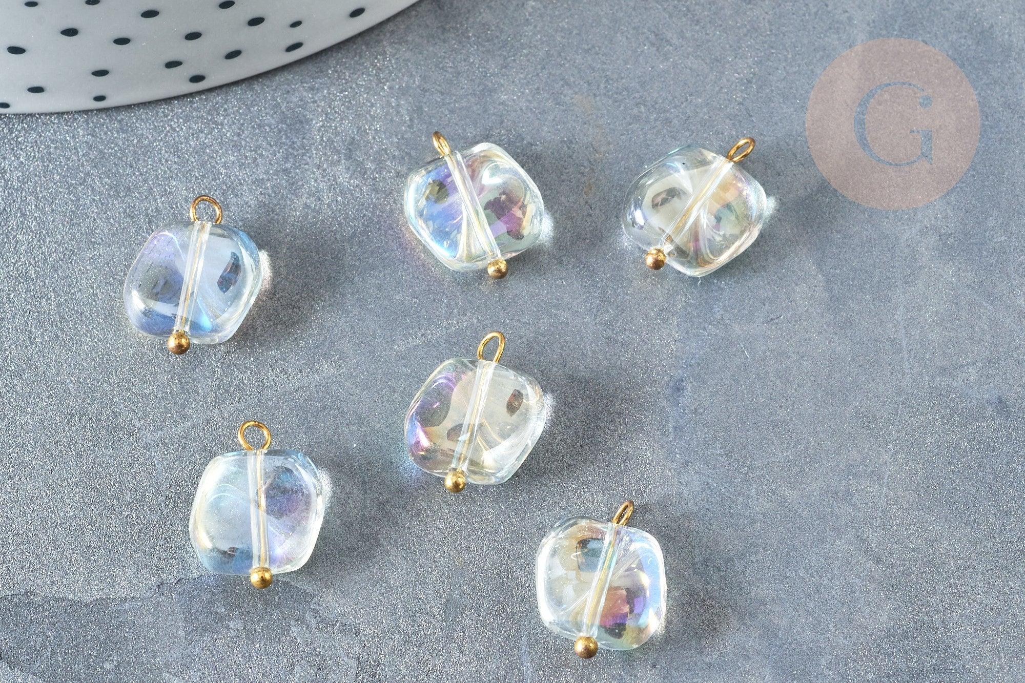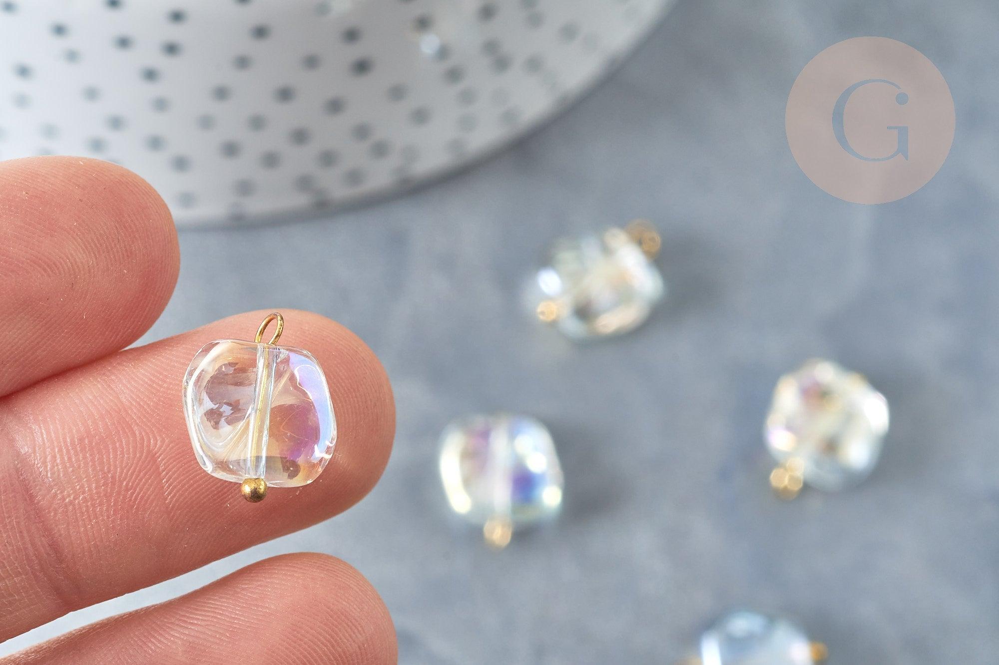 Déjate seducir por este bonito colgante cuadrado redondeado de cristal blanco montado sobre una varilla de latón bañado en oro .