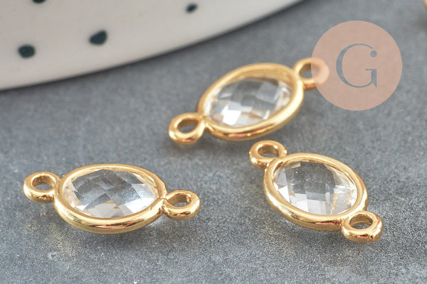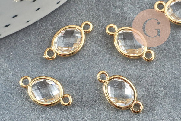Colgante conector ovalado de latón dorado Creación de joyas de cristal transparente, cristal y oro, 15 mm, x2 G4095