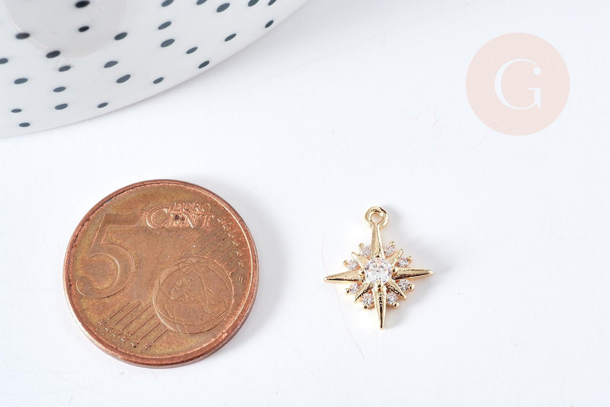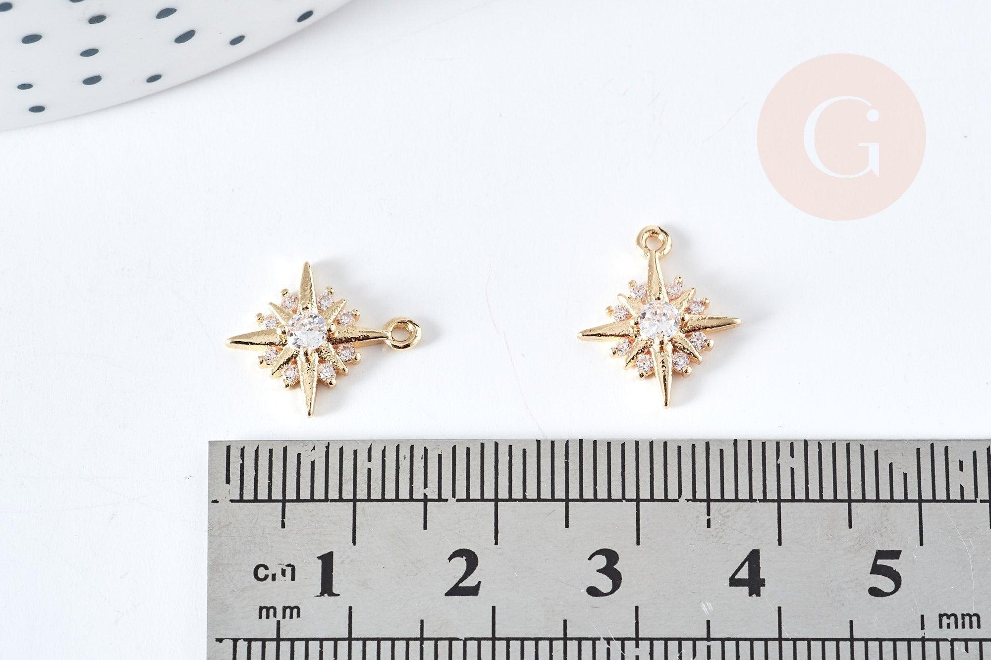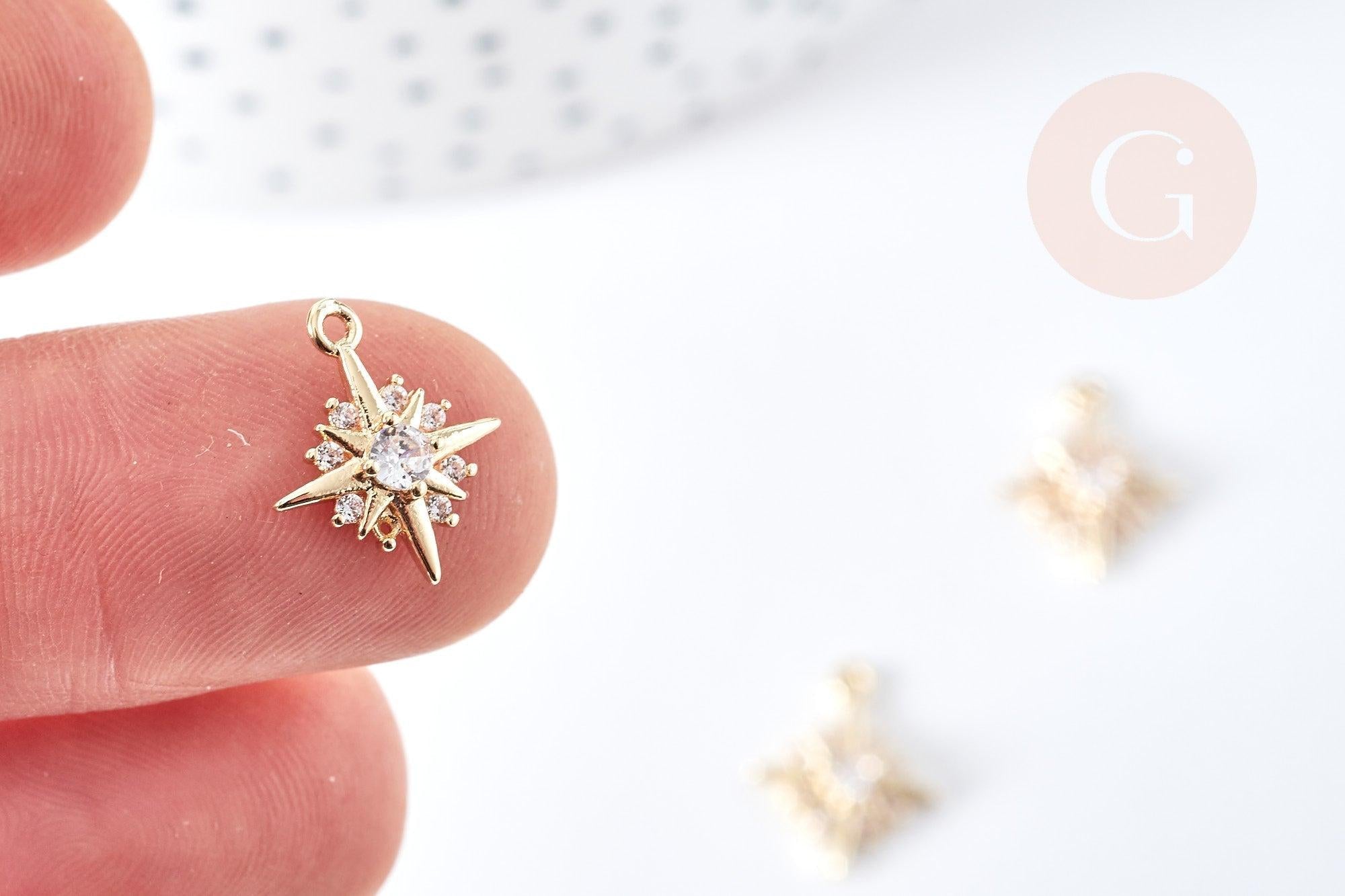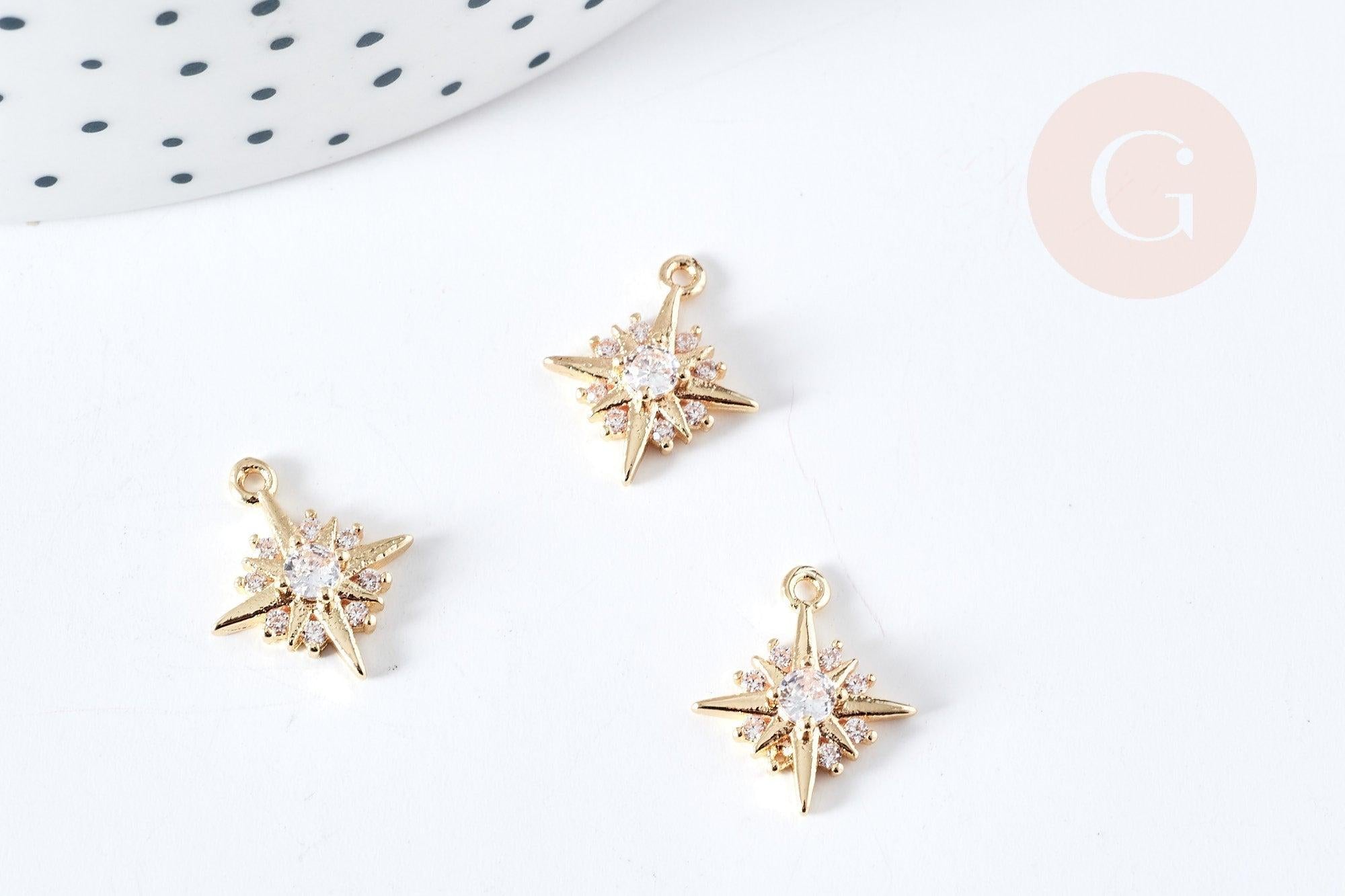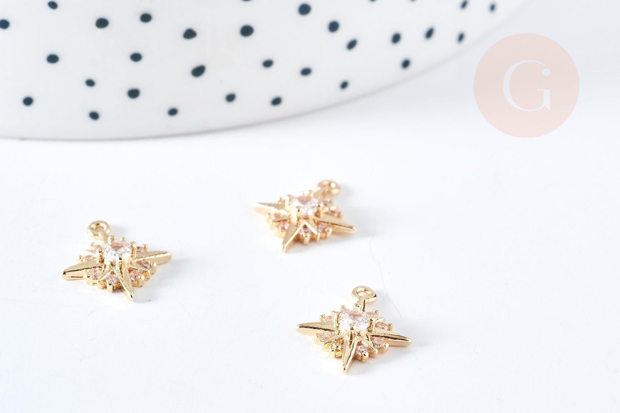 Colgante estrella del norte en latón bañado en oro de 14 quilates con cristal de circonita blanca, 14 mm, colgante bañado en oro, creación de joyería, x1 (G8576)