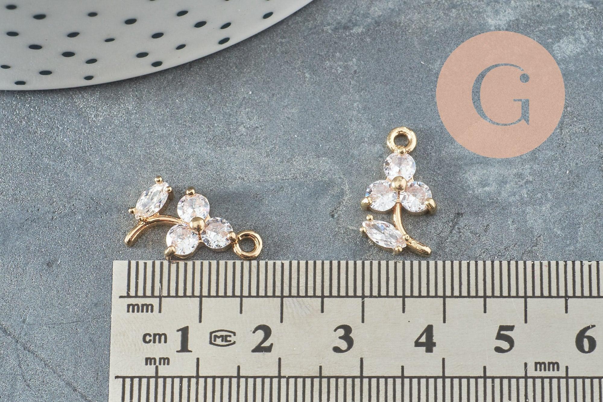 Nuestro colgante de flor de 3 pétalos en latón bañado en oro de 24 quilates con circonitas es una pieza versátil, lista para integrarse en una variedad de creaciones de bricolaje.