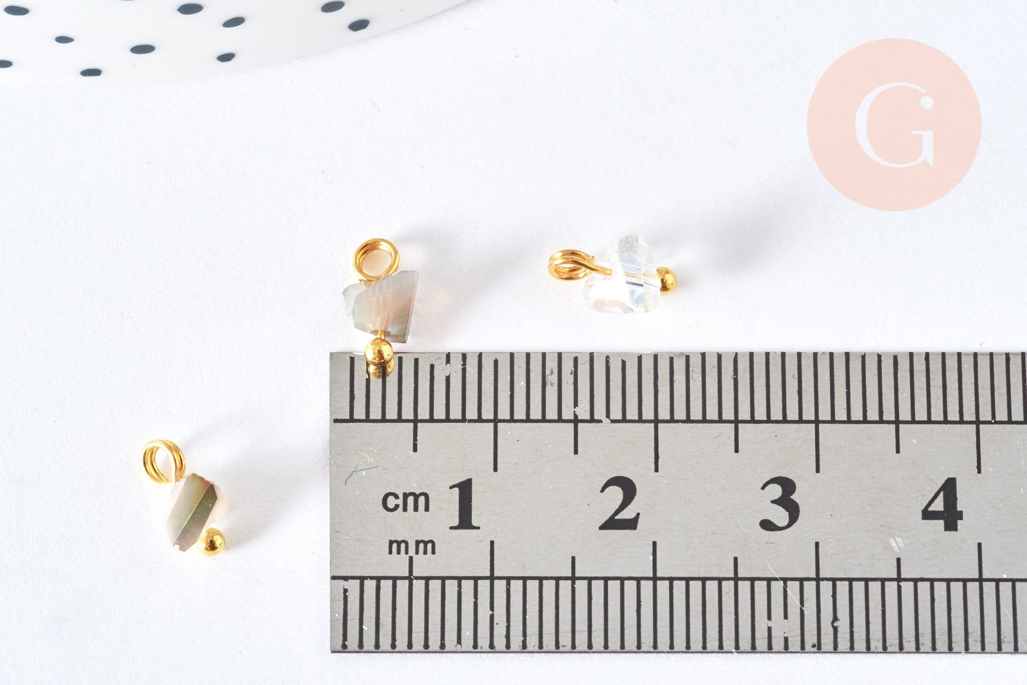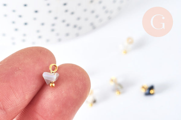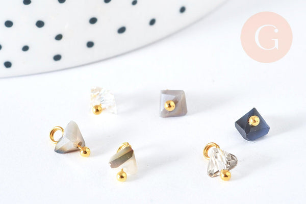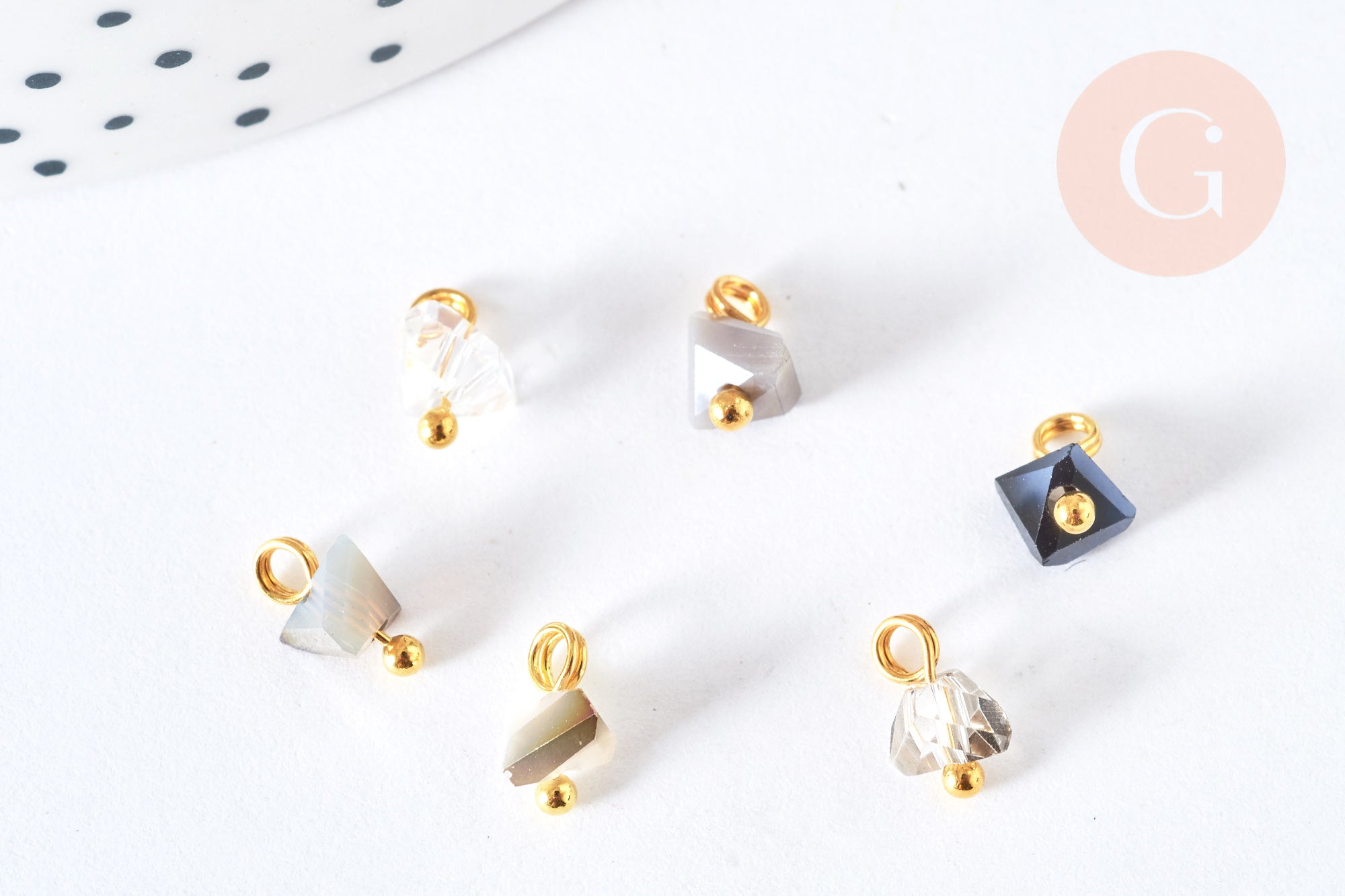 Déjate seducir por estos bonitos charms realizados con cuentas triangulares de cristal transparente en tonos grises y negros, sobre un soporte de latón dorado.