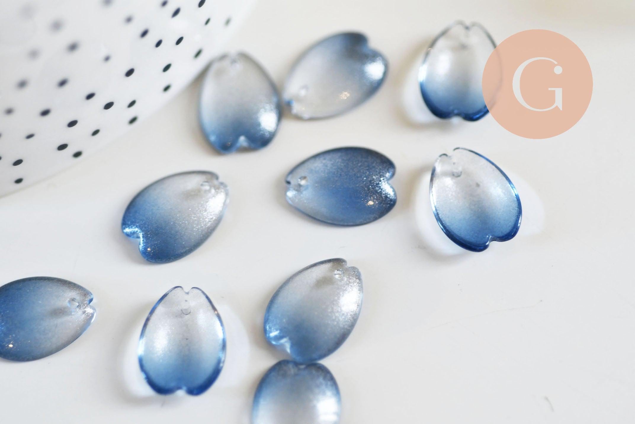 Adorables colgantes de cristal transparente en forma de pétalos, color azul real en estilo art deco.