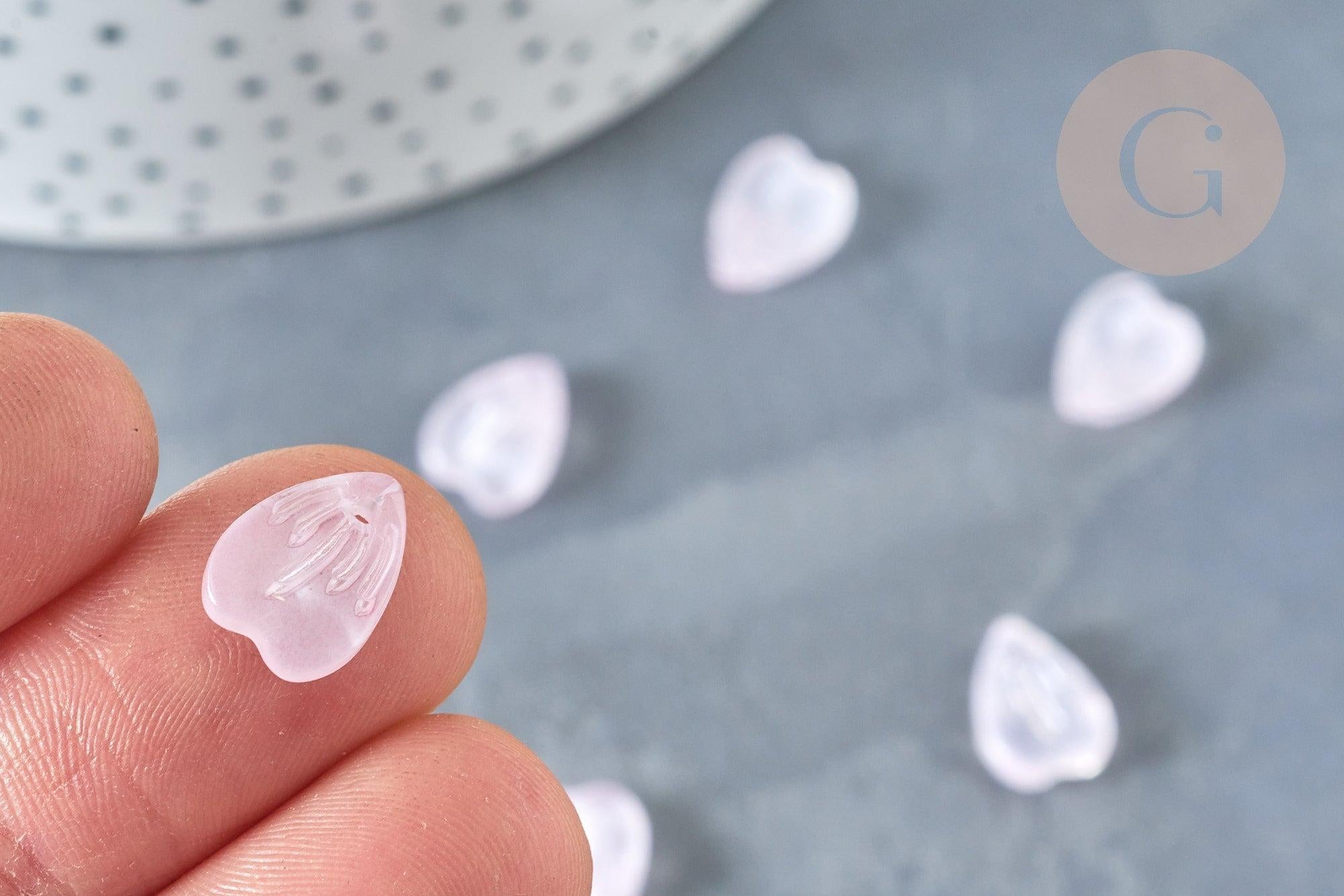 Realza tu estilo con estos colgantes de cristal rosa muy claro en forma de pétalo , con una estética art déco. Fabricados con vidrio transparente de calidad, estos pétalos de vidrio serán la elección perfecta para todos sus proyectos creativos de joyería .