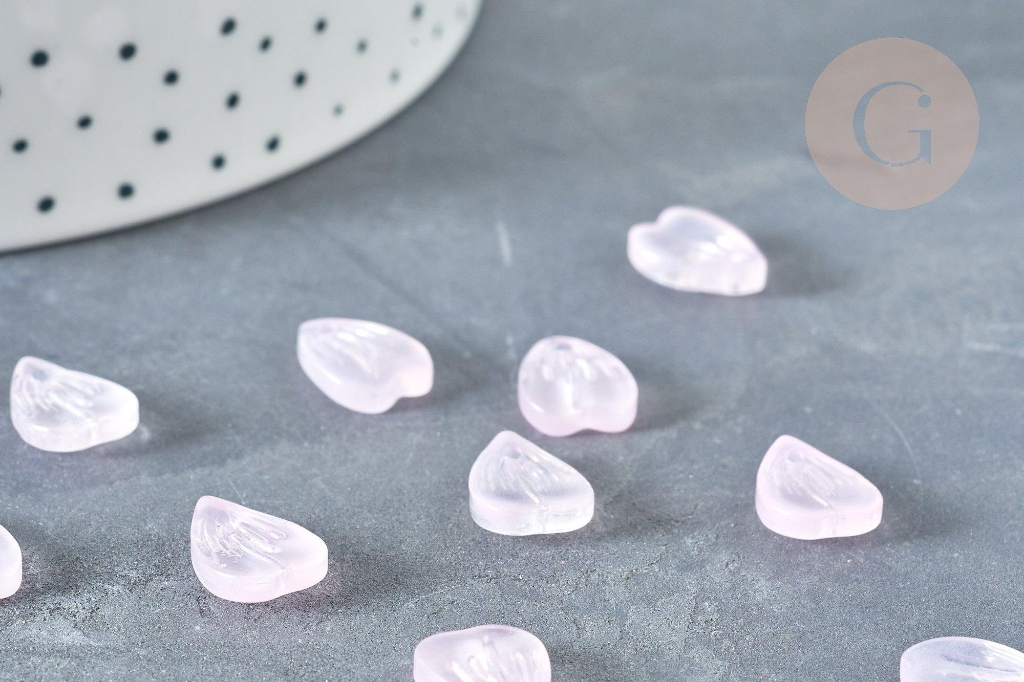 Colgante de pétalos de cristal rosa claro de 12 mm, cuentas de cristal checo, cuentas vegetales, x10 (G8252)