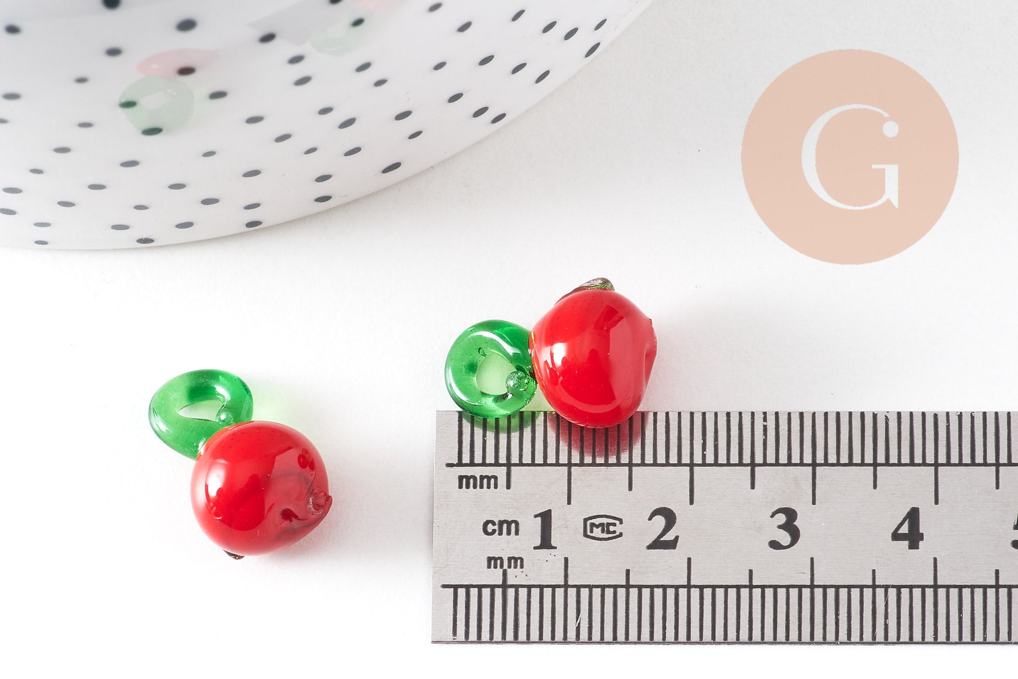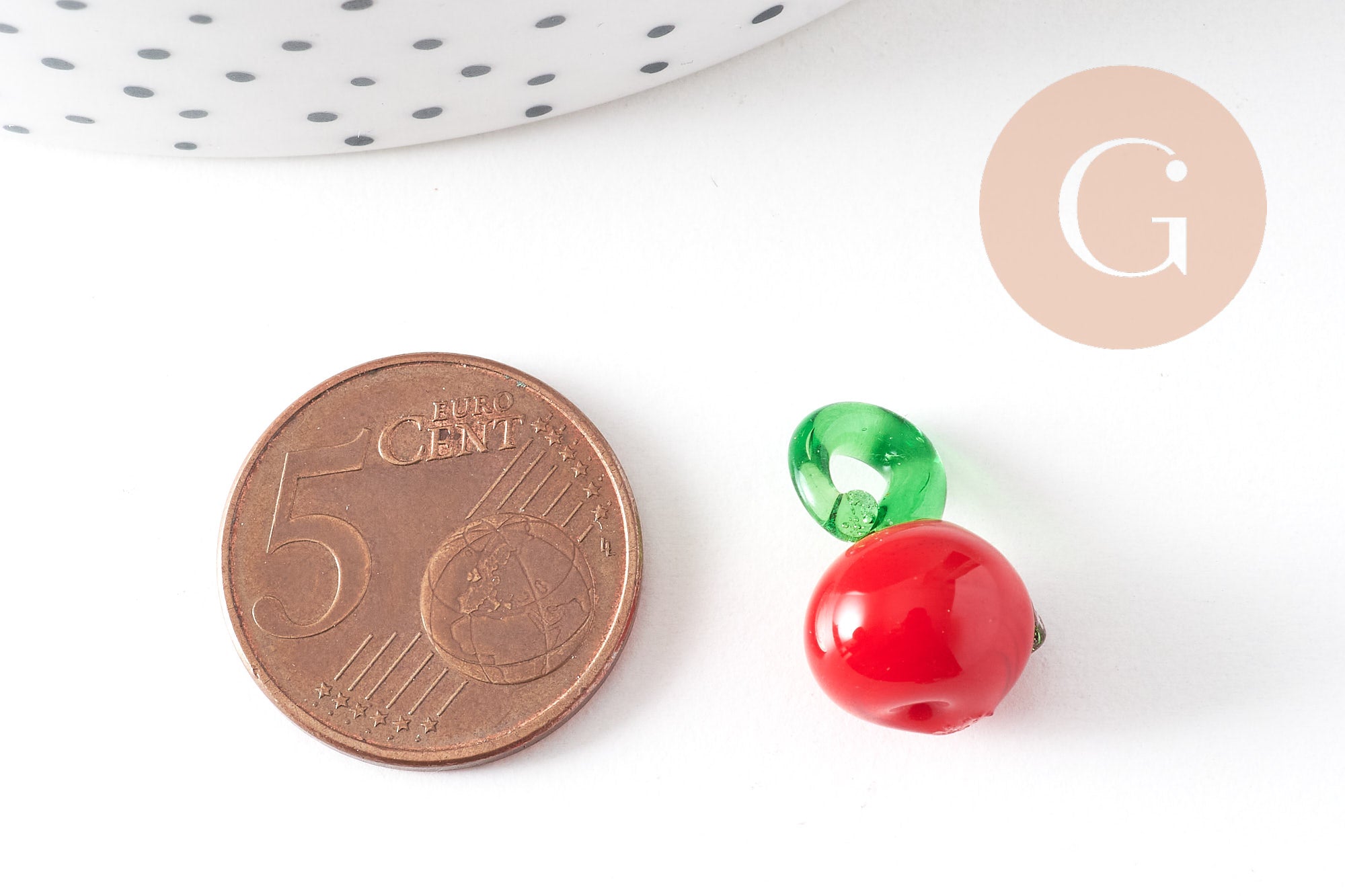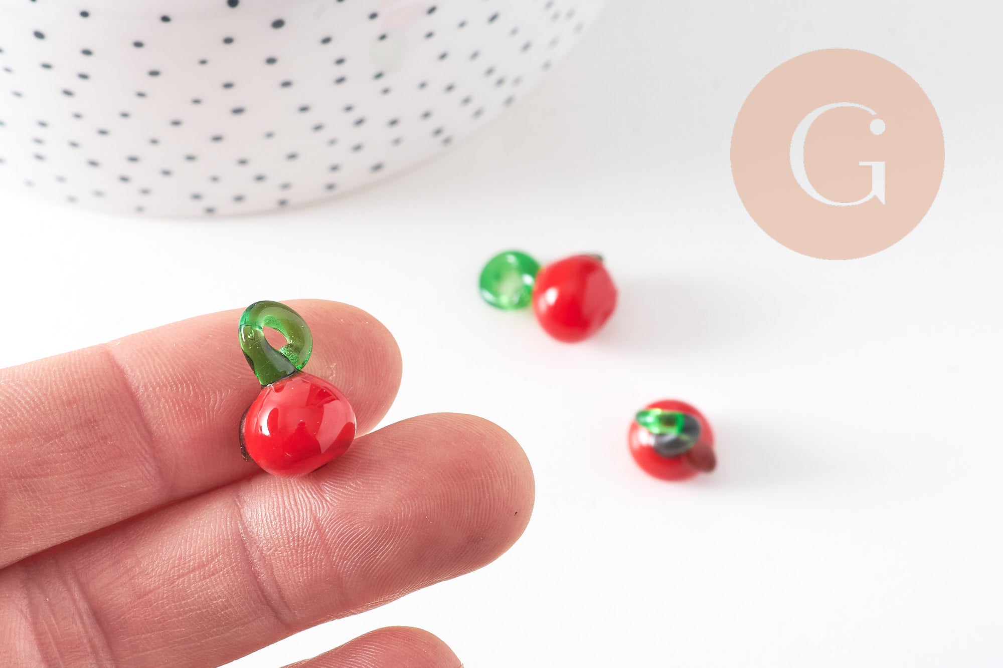 Pendentif pomme fruit rouge verre tchèque 25mm, x5 (G1986)
