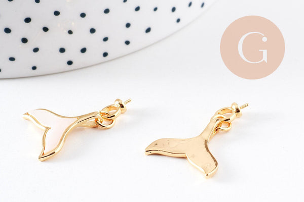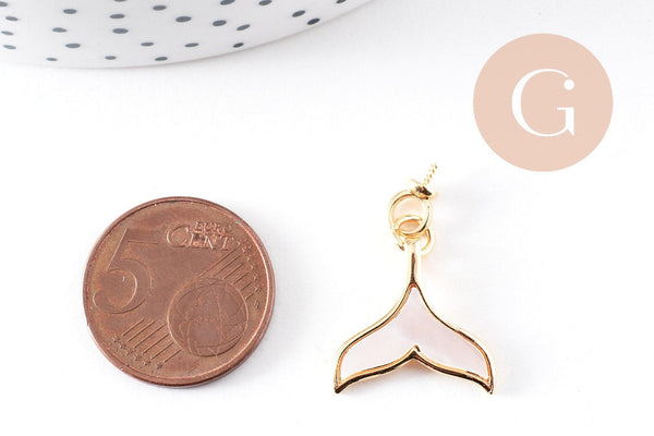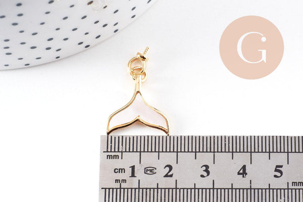 Colgante de cola de pez de acrílico blanco perlado, latón bañado en oro de 18 quilates, 21 mm, x1 (G10085)