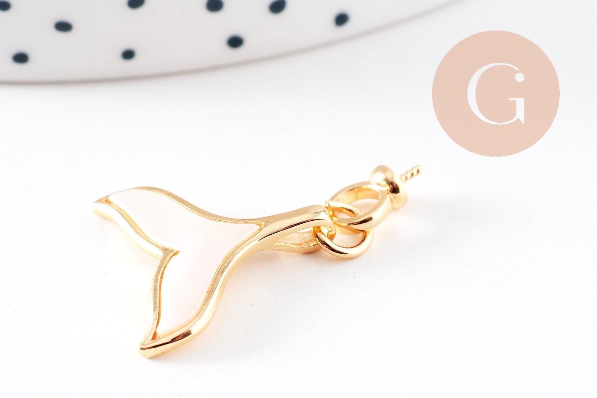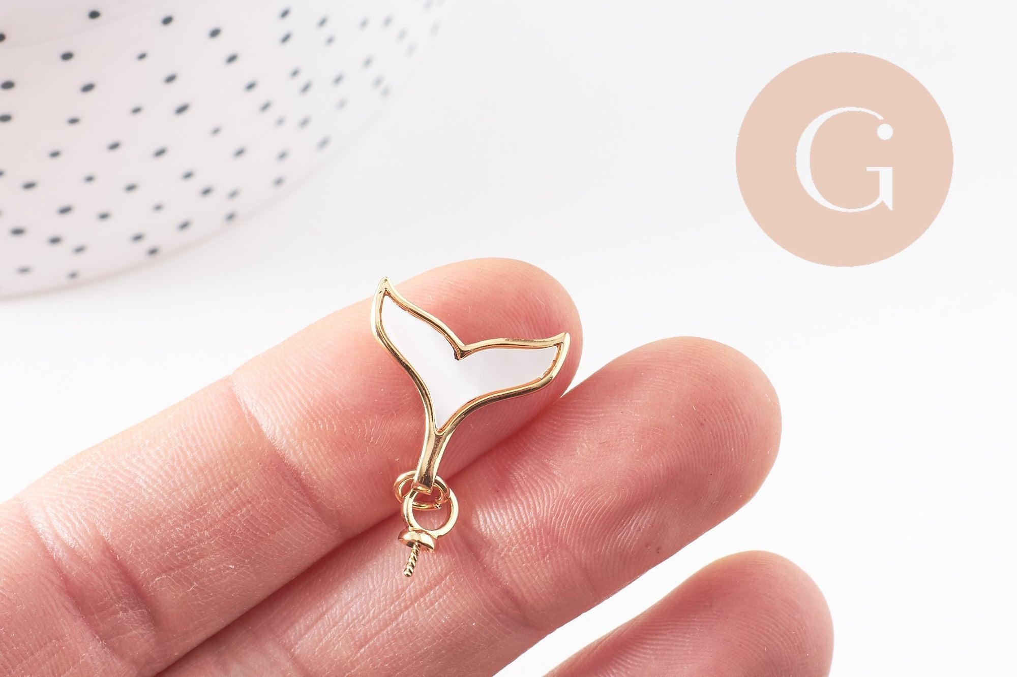 Añade un elegante toque náutico a tus diseños con este colgante de cola de pez , elaborado en acrílico blanco perlado y montado sobre una base de latón bañado en oro de 18 quilates .