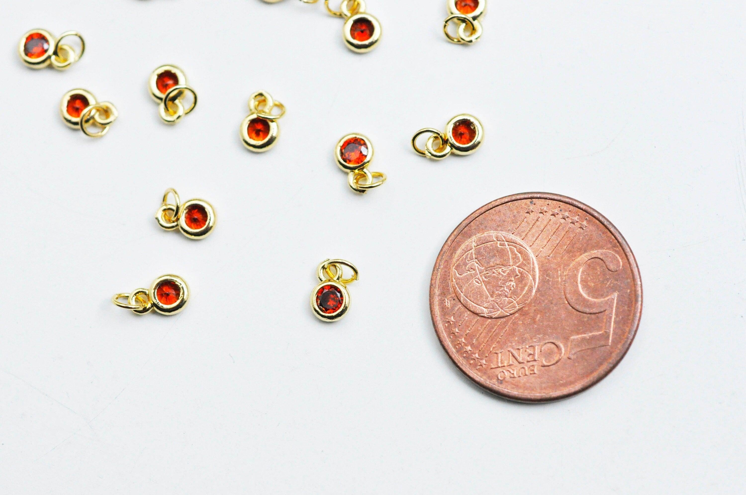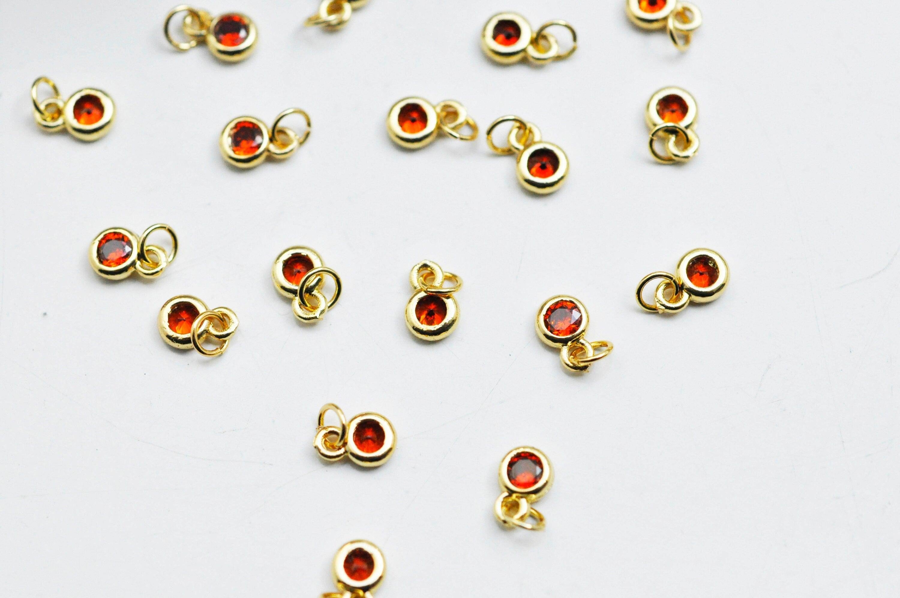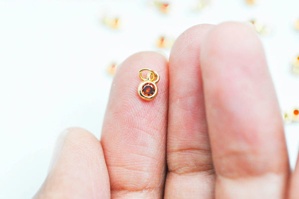 Colgante redondo de oro circonita roja de 24 quilates, colgante de cristal, colgante de cristal de oro, creación de joyas, 6,5 mm, 5