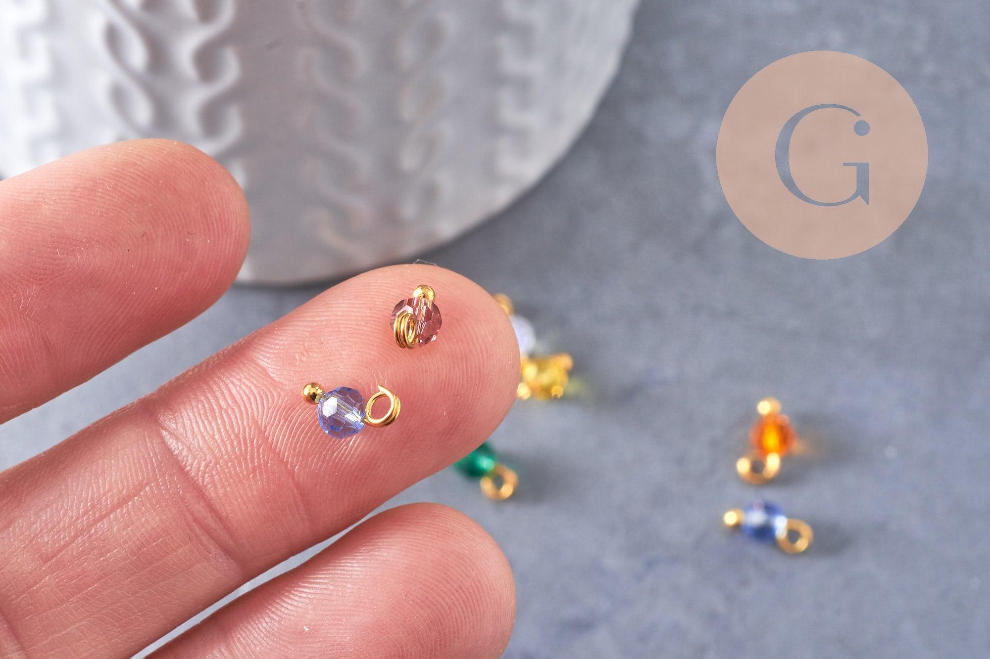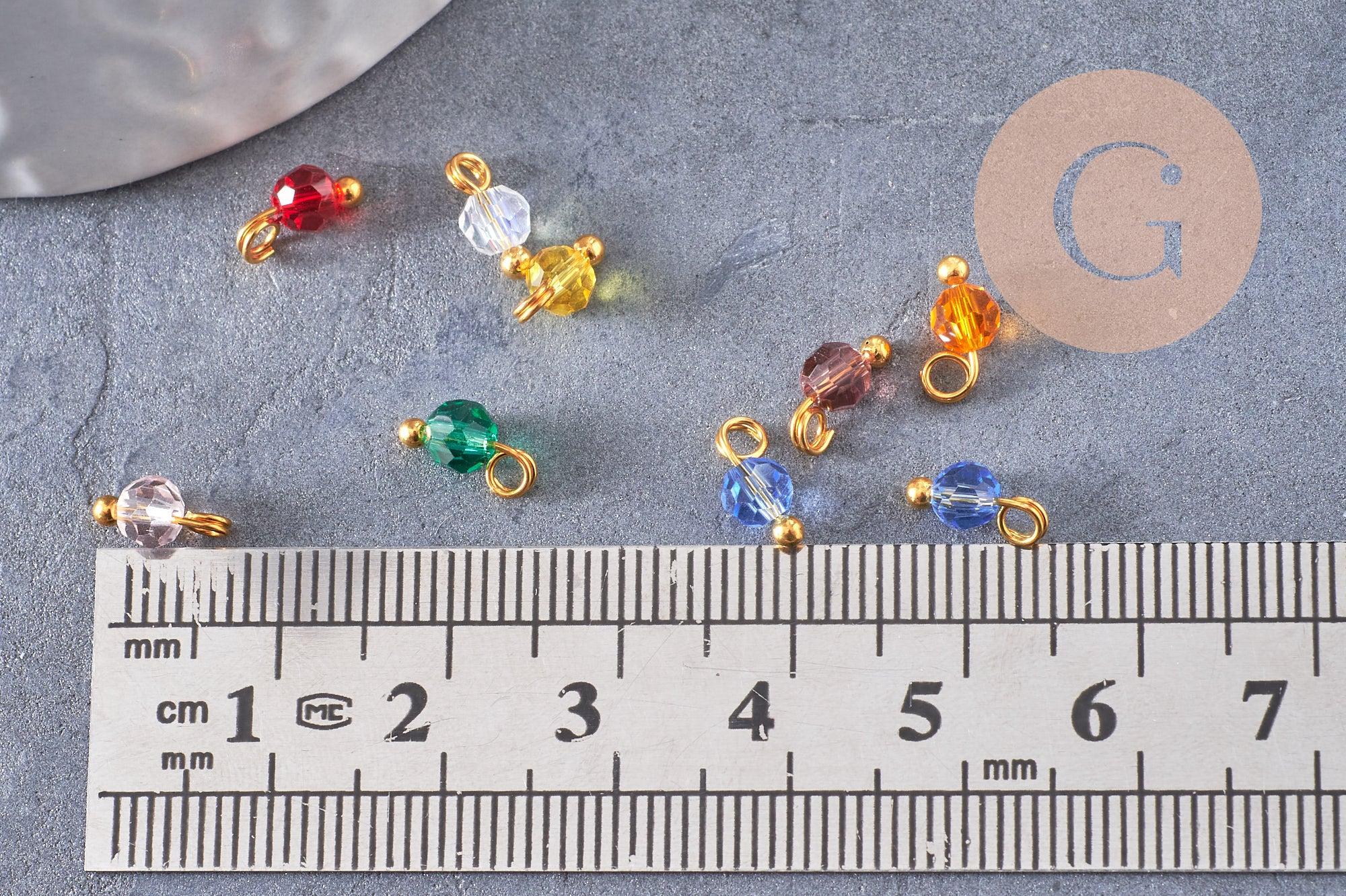 Déjese seducir por estos bonitos dijes de cristal transparente de diferentes colores, sobre un soporte de latón dorado.