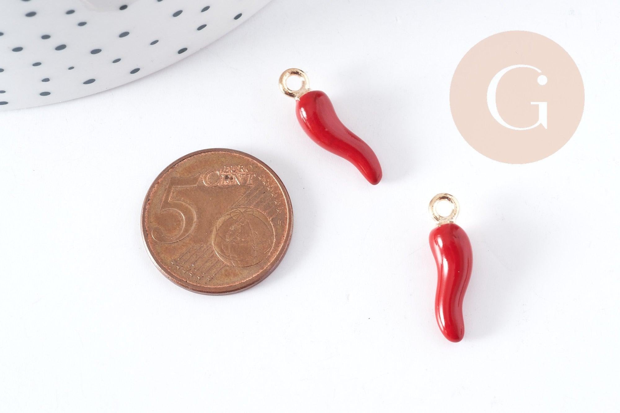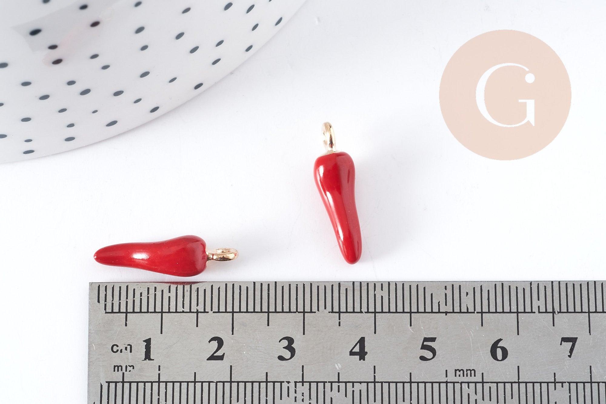 Breloque piment émail rouge zamac doré 21mm, pendentif création bijoux, x5 (G8948)