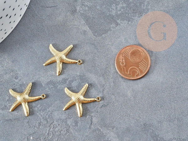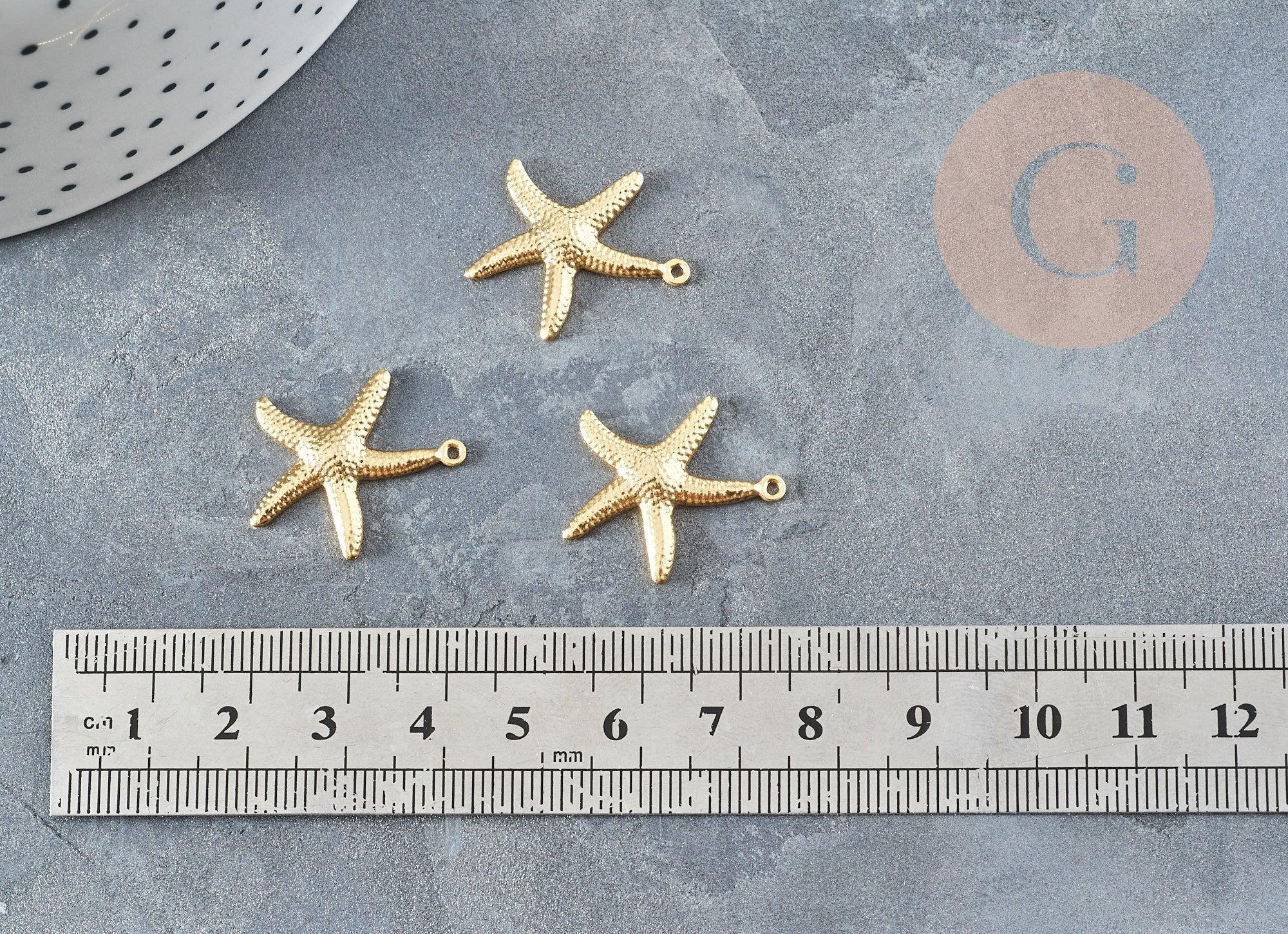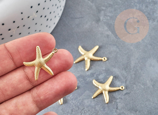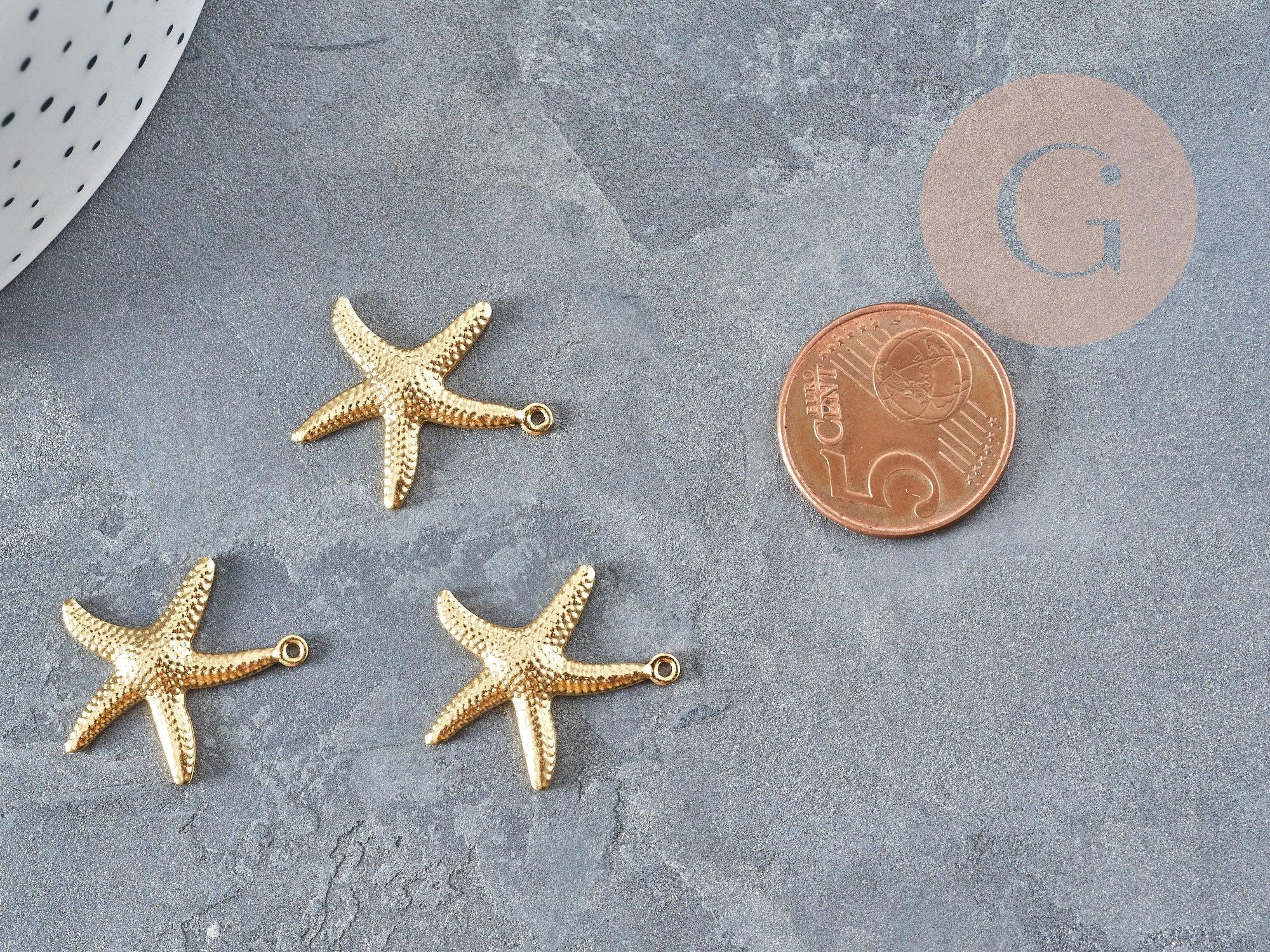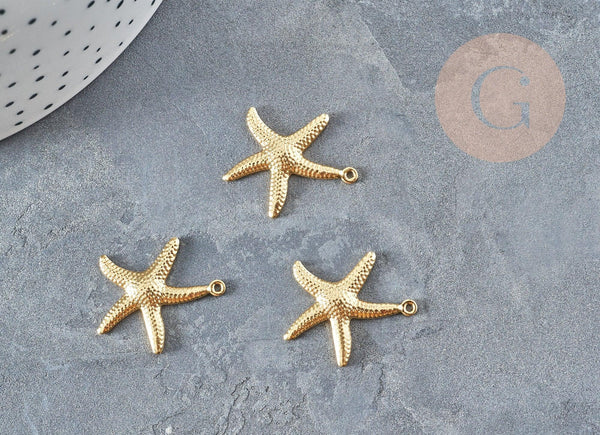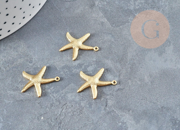 Un juego de 2 colgantes de estrellas de mar de acero bañados en oro.