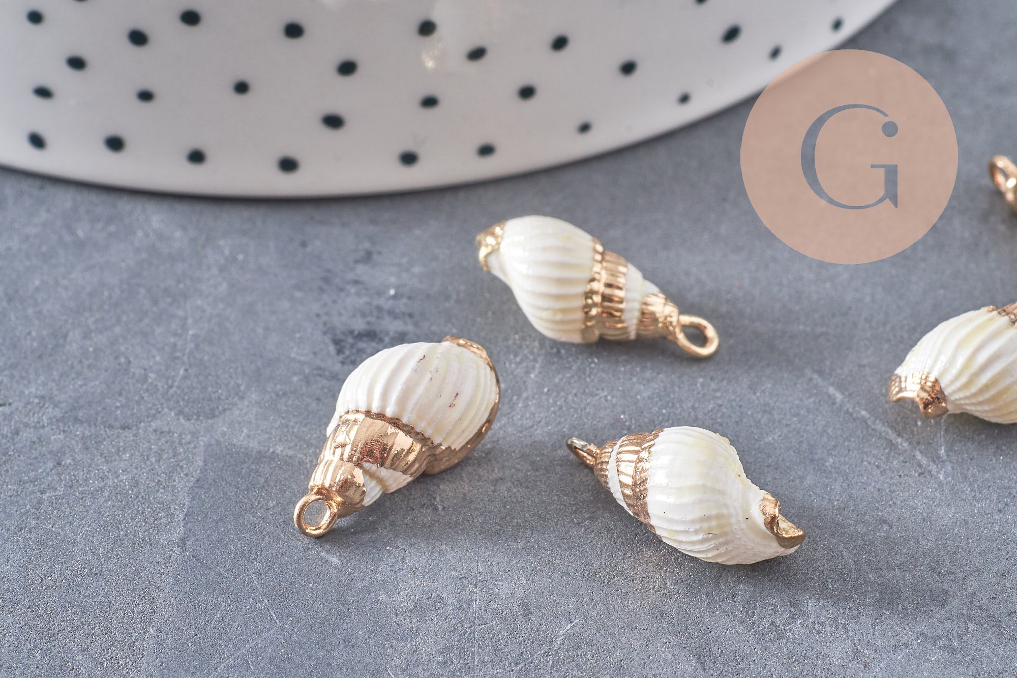 Enamórese de estos auténticos colgantes de concha blanca en espiral, montados sobre un soporte chapado en oro. Cada concha es única y añade encanto y autenticidad a sus creaciones de bisutería DIY.