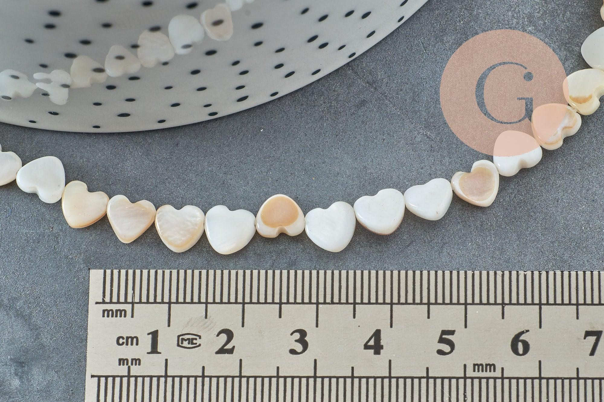 Cuenta de corazón de nácar blanco natural 6 mm, nácar blanco, cuenta de corazón de nácar, concha blanca, alambre de 39 cm, x1 G5862