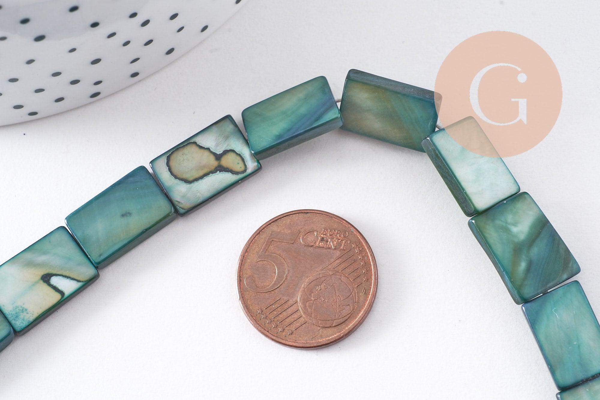 Cuenta rectangular de nácar verde natural de 15,5 mm, creación de joyería de concha de nácar, hilo de 38 cm, x1 (G1701)