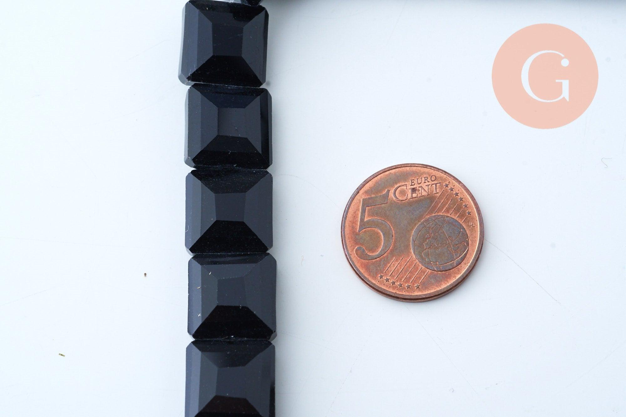 Perle verre carré noir opaque facetté 13mm, perles verre, verre bleu, fil de 20 perles, x1 (G6065)