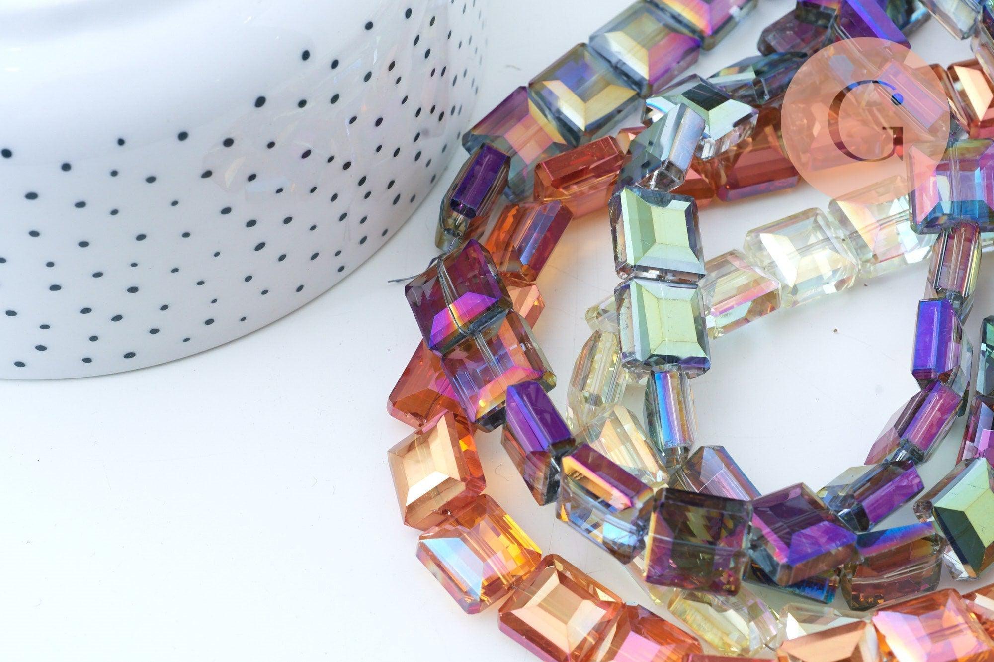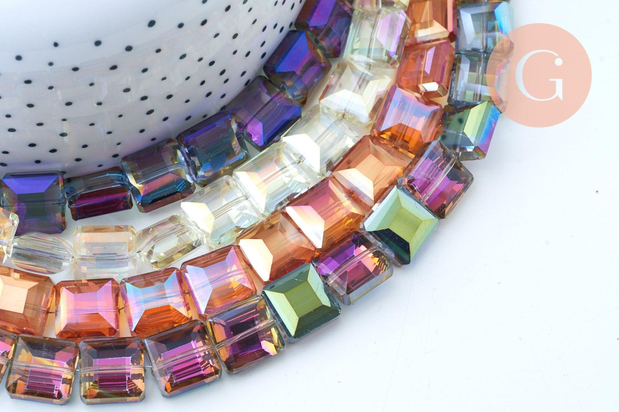 Estas cuentas de vidrio iridiscentes facetadas cuadradas son ideales para crear una serie de piezas de bisutería DIY.
