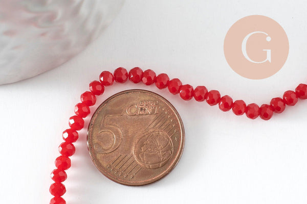 Cuentas de cristal rojo de 3,5 x 3 mm, cuentas de joyería, cuentas bicono de cristal rojo brillante, cuentas de vidrio facetadas, tira de 125 cuentas x1 (G7877)