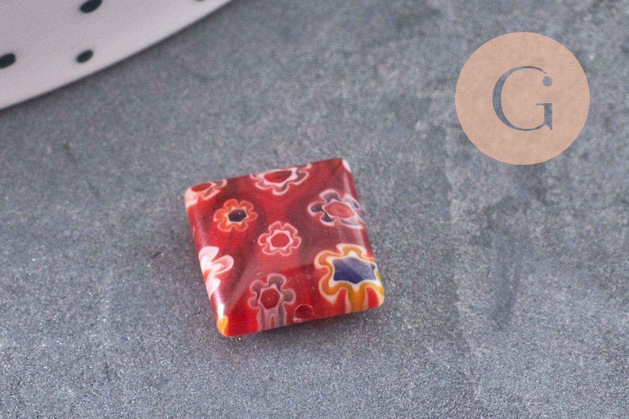 Cuenta de vidrio millefiori cuadrada, cuenta de vidrio, vidrio artesanal, cuenta de joyería de verano, 10 mm, x5 (G2614)