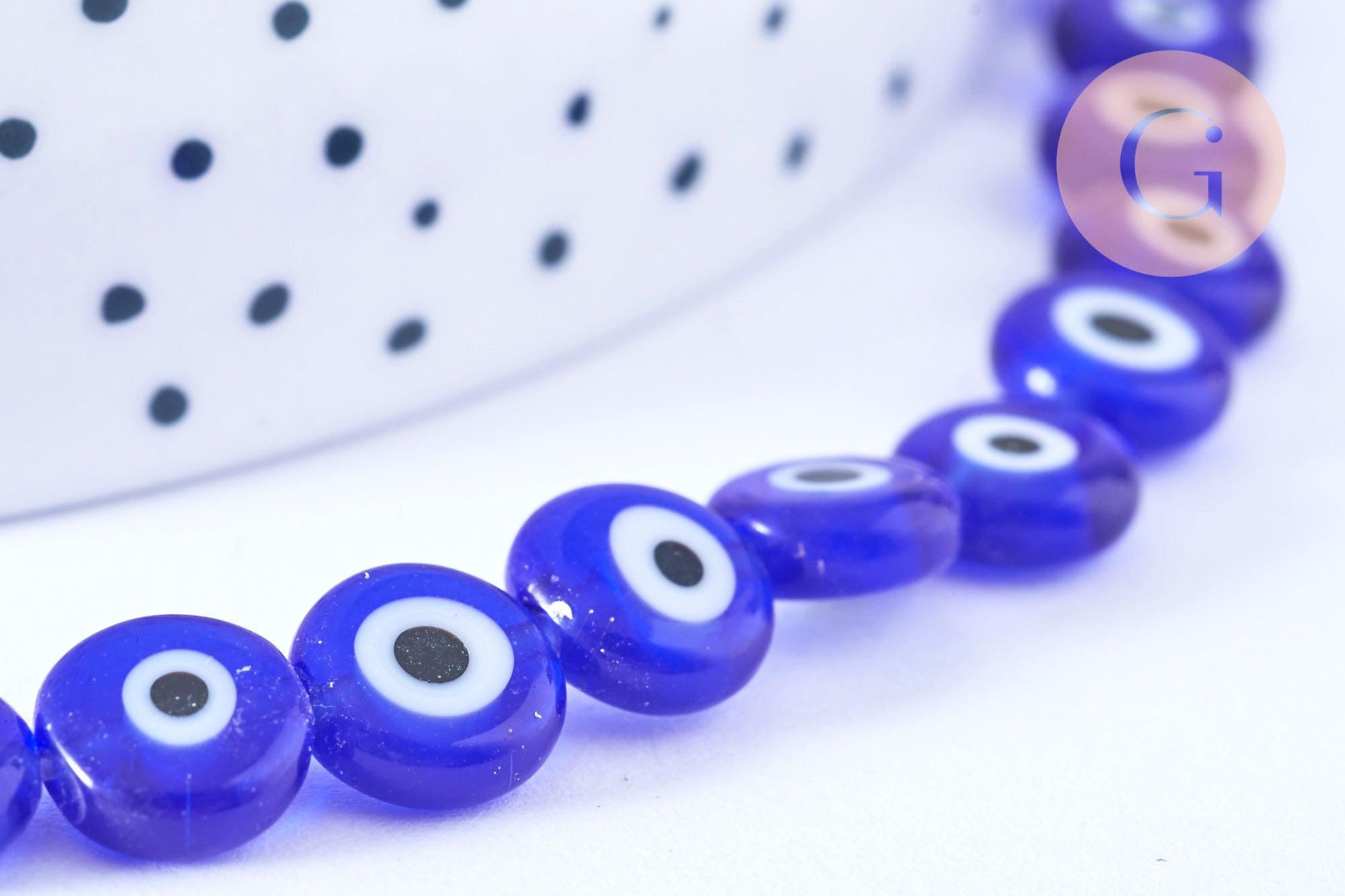 Utilice estas cuentas de vidrio redondas decoradas con un ojo protector para crear bisutería única.
