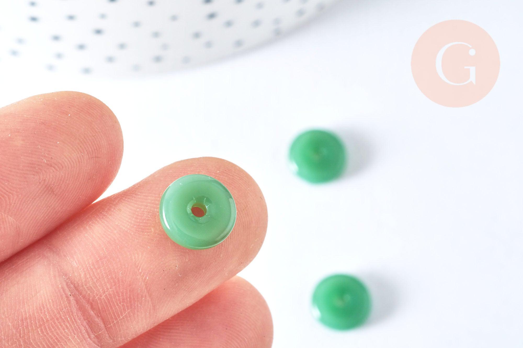 Perle donut verre imitation jade vert foncé 10mm, fournitures pour création de bijoux DIY, x2 G6999