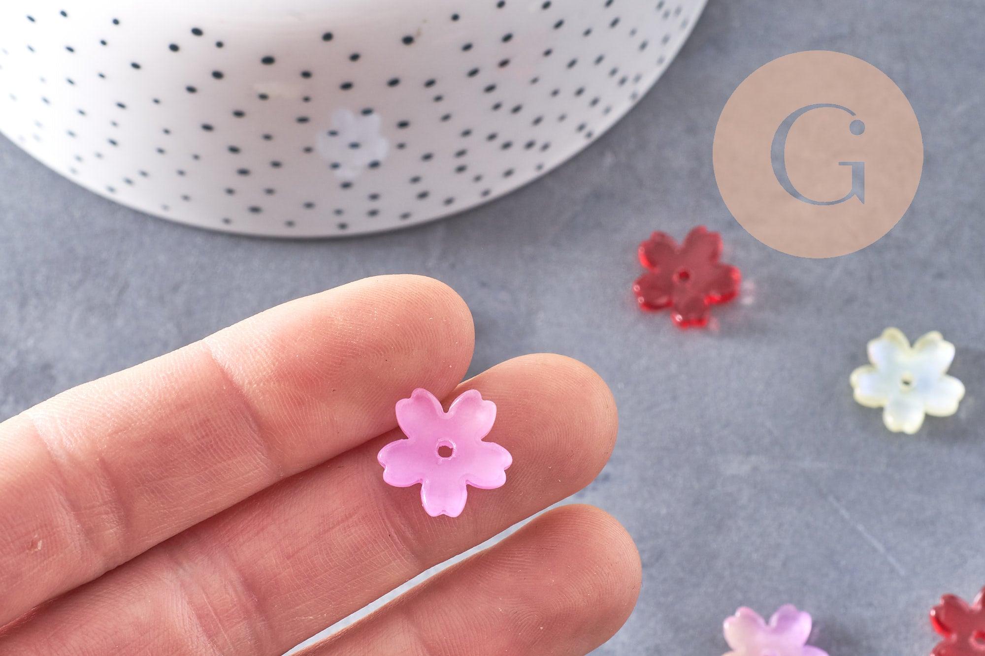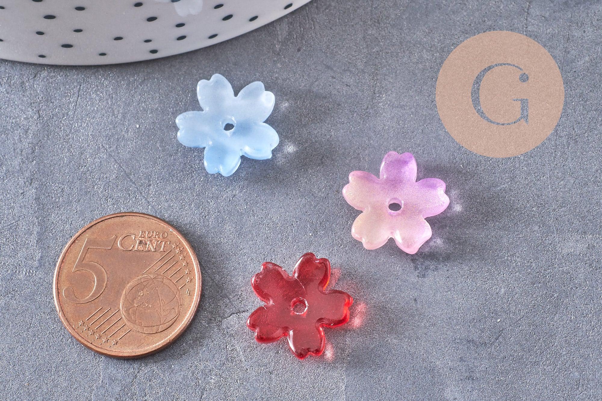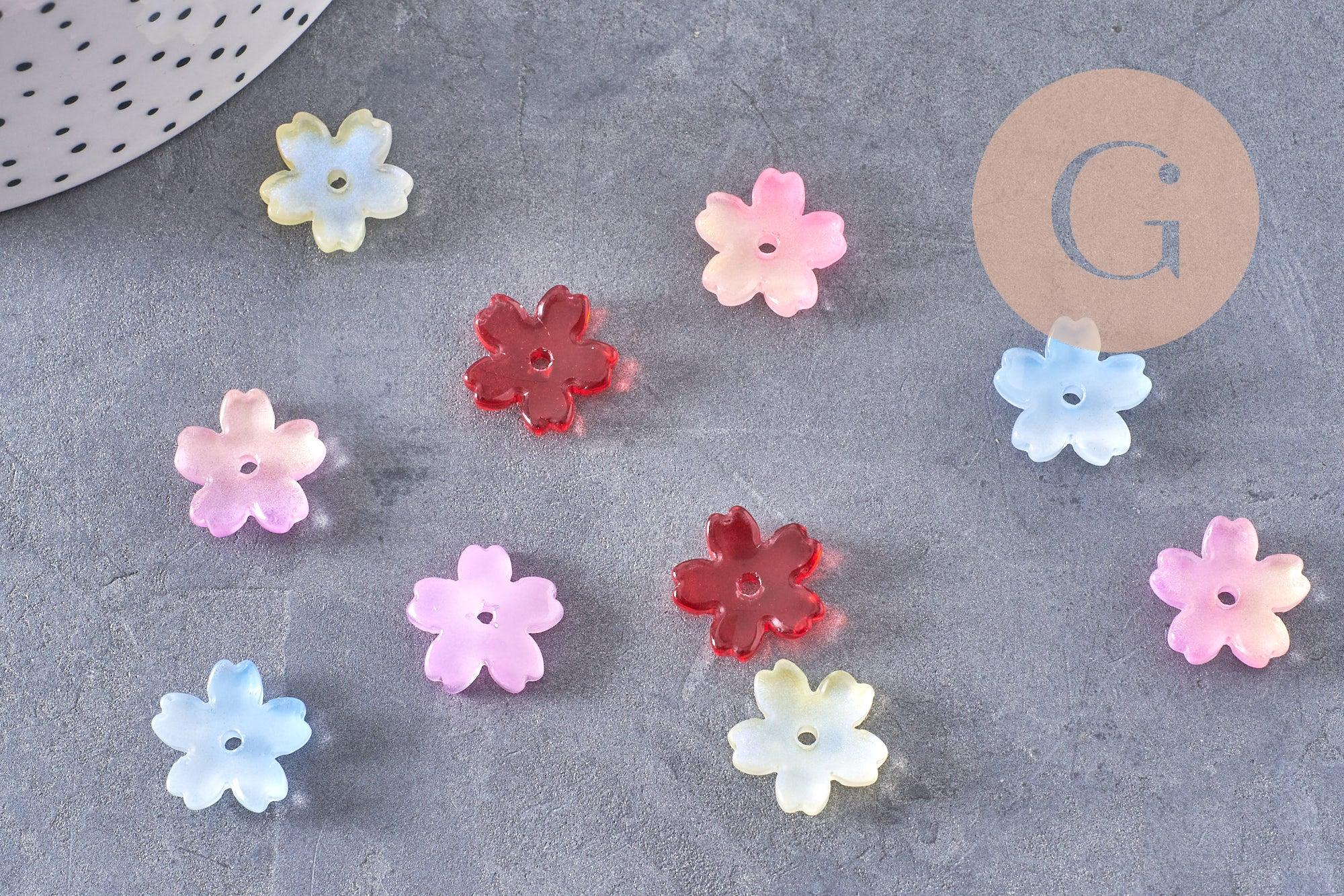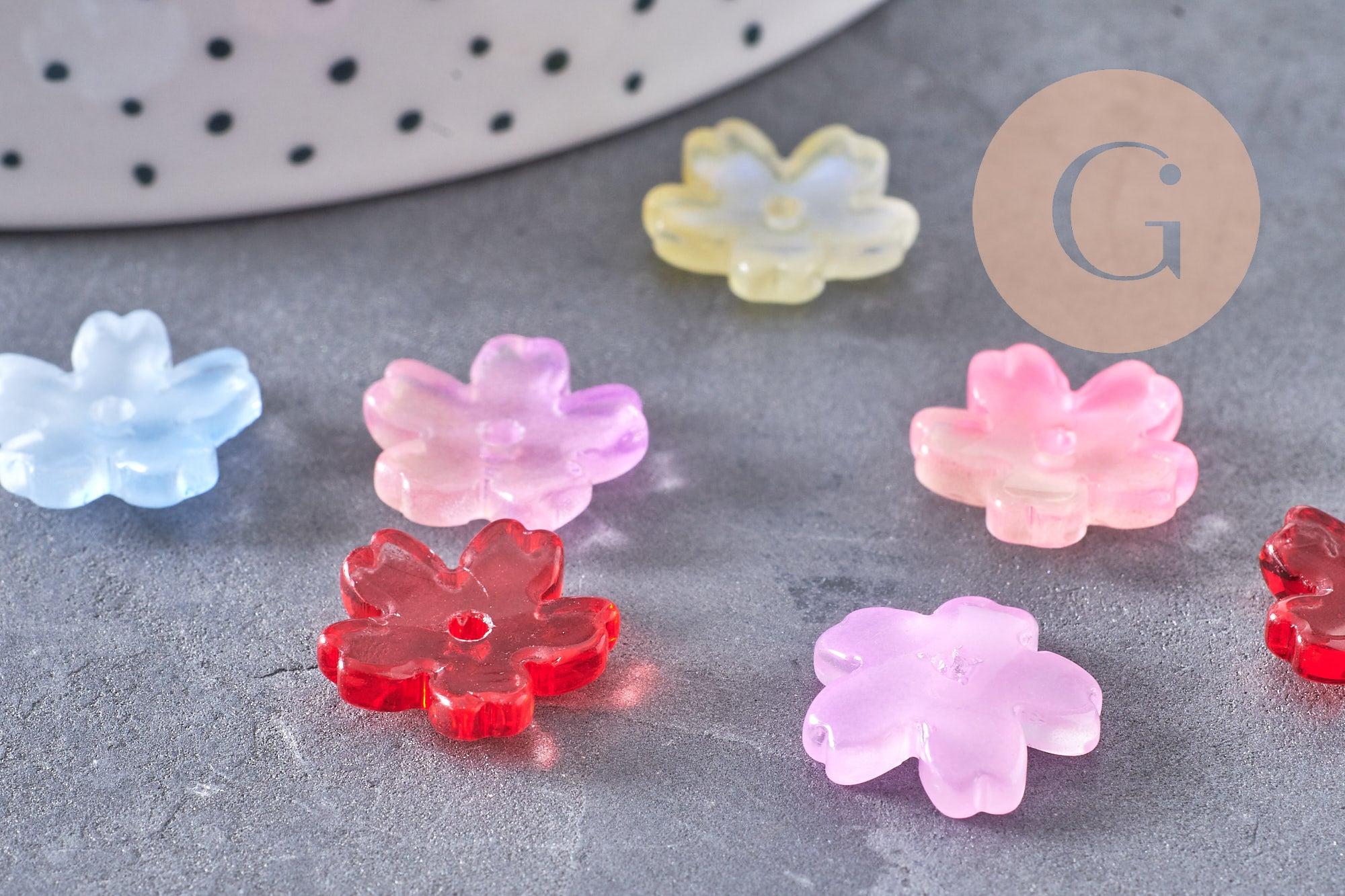 Cuentas de flores de vidrio amarillo multicolor recubiertas de un fino polvo de brillo dorado para lograr un efecto brillante y luminoso. Su transparencia y colores brillantes lo convierten en un imprescindible para tus creaciones de joyería DIY.
