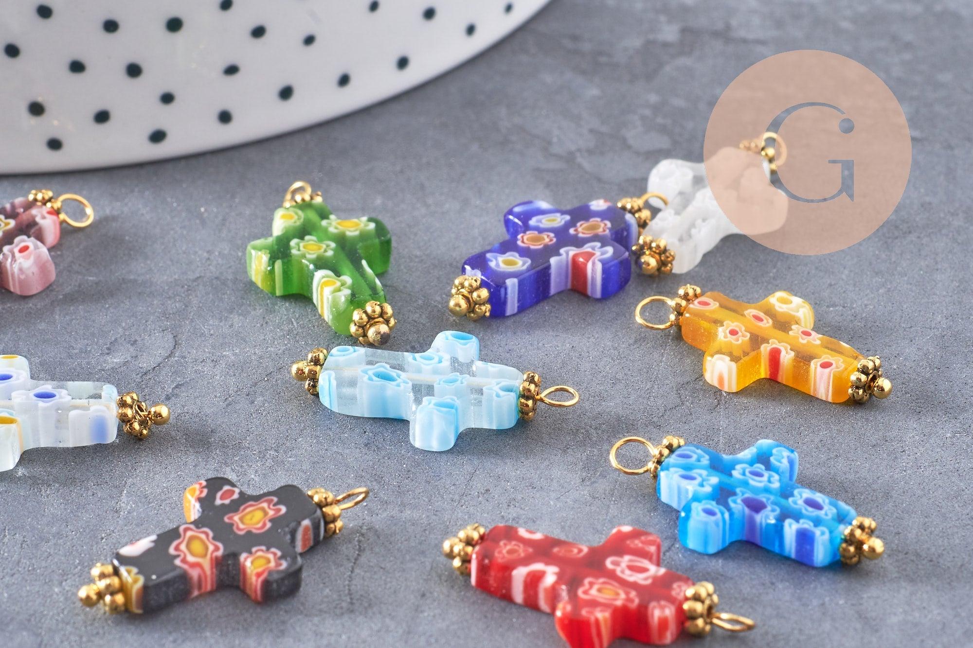 Déjate seducir por este colgante de cruz de cristal millefiori . Podrás crear bisutería de tu elección, incluidos pendientes, collares y collares .