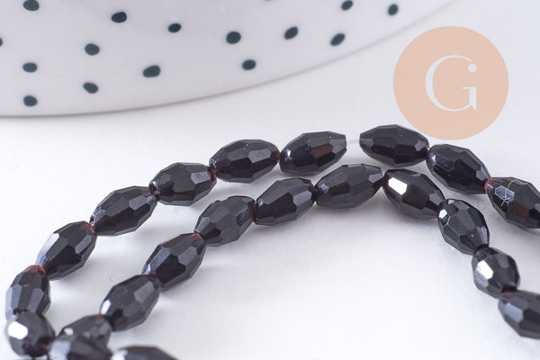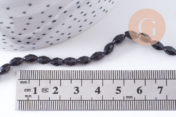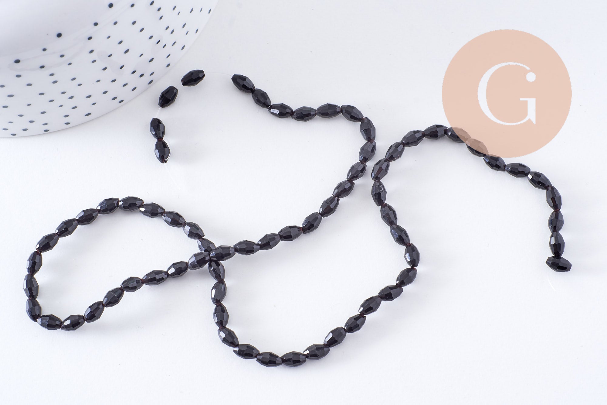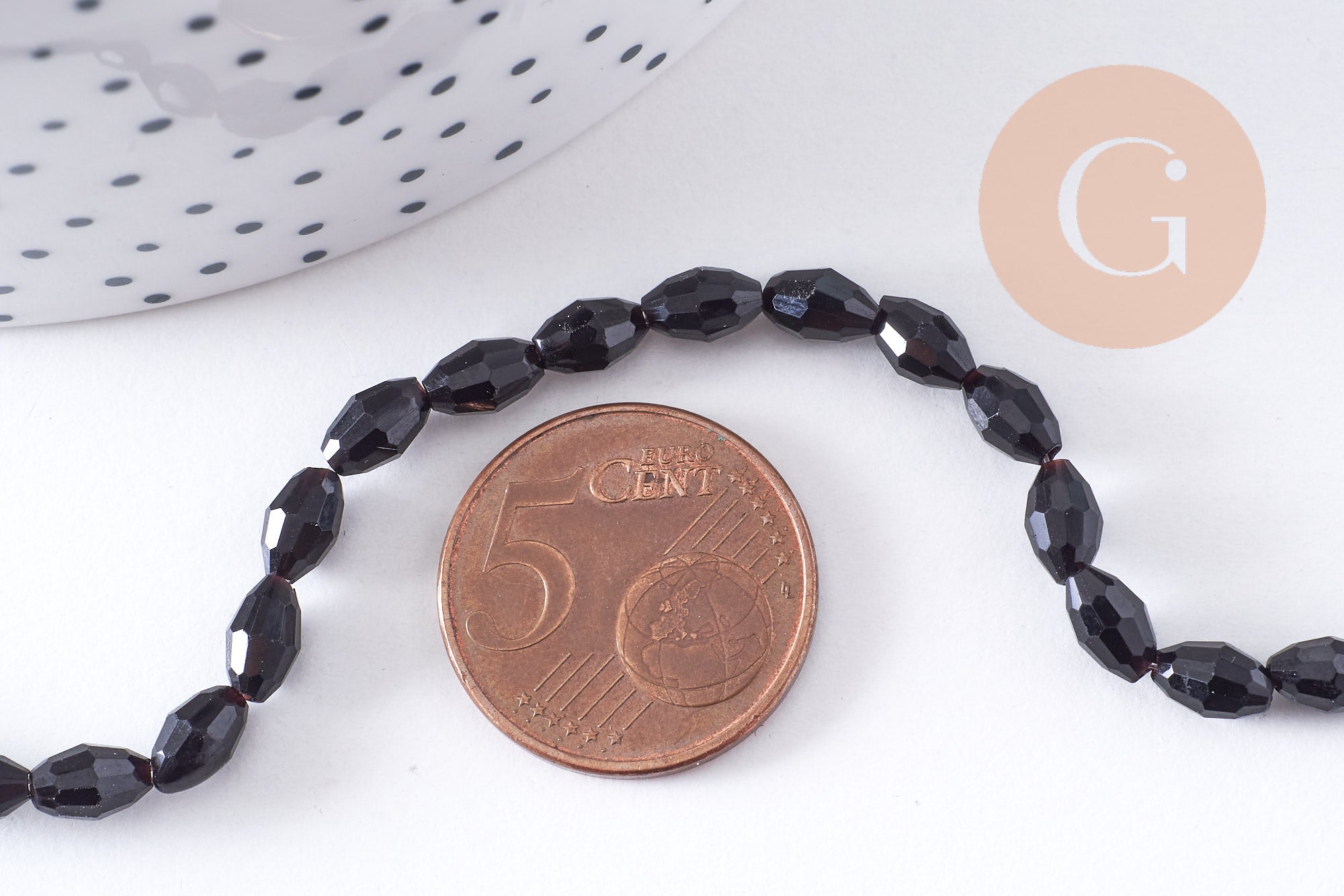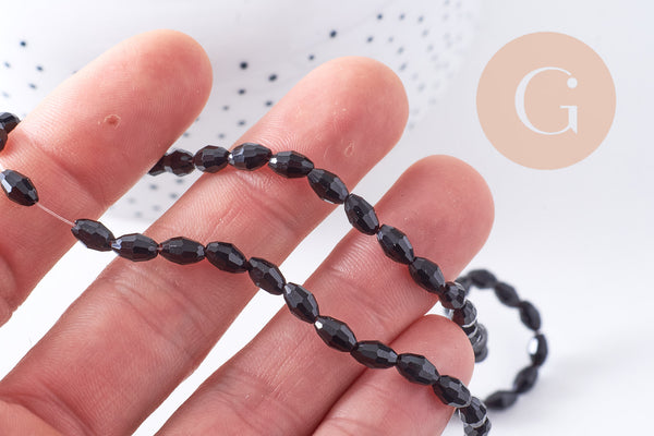 Perle ovale verre facetté noir 6x4mm, fil de 38cm x1 (G10628)