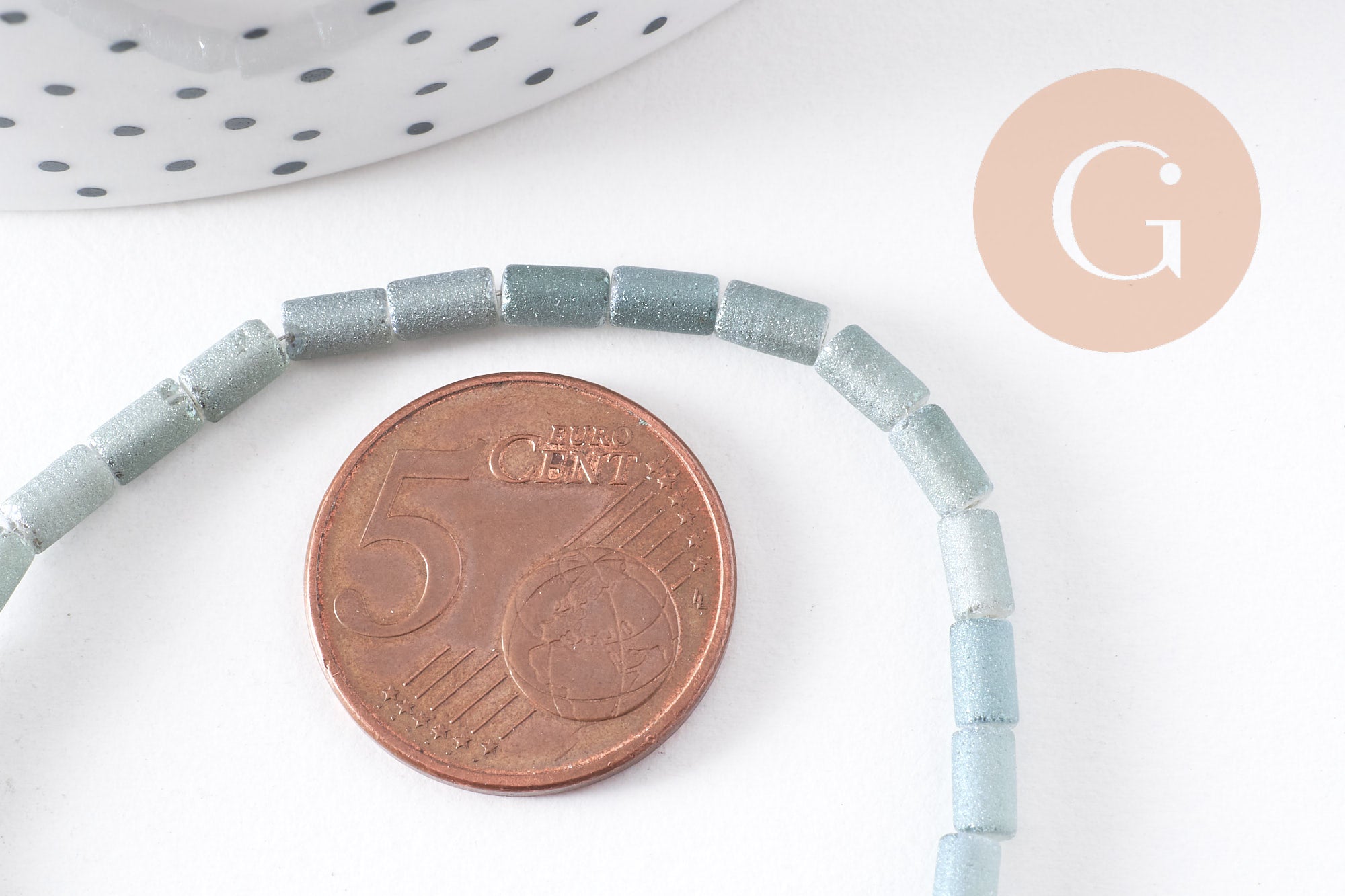Estas bonitas cuentas tubulares de vidrio mate con reflejos metálicos te serán útiles para crear joyas como collares, pulseras, pendientes o incluso anillos.