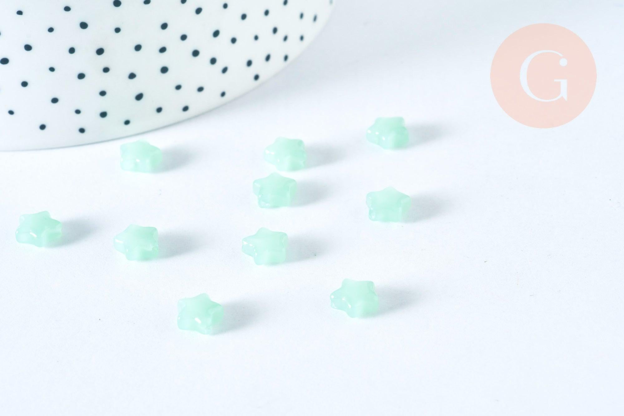Perle verre imitation jade étoile vert clair 8mm, création de bijoux DIY, perle en verre étoile vert clair, x10 G6950